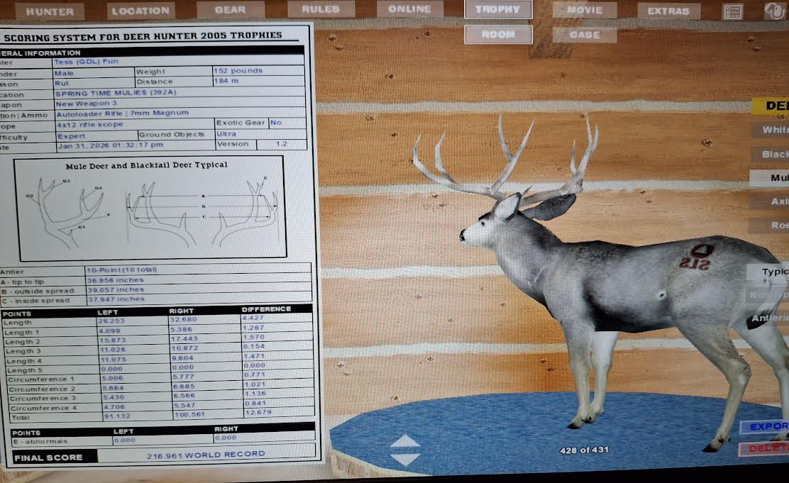 GAME SERVERS IP ADDRESS Granddad(GDL)82.36.51.239 Open 24/7 Please use ENGLISH when talking on server thank u. HI IF ANY ONE INCLUDING NON MEMBERS KILL A WR. EXPORT IT AND SEND IT IN AND WE WILL POST IT ON WEBSITE. SEND TO EITHER EMAILS ON FRONT WEBSITE. DH2005 GAME SERVER IP.. 82.36.51.239 IS OPEN TO ALL . SEE IF YOU CAN BEAT THE SCORE ON SCREEN AND GET YOUR KILL UP THERE FOR THE DAY. SCORE RESETS MIDNIGHT. Hi if your dh2005 v 1.2 does not play full screen replace aspen. dll and stags head in game folder, with aspen .dll and stags head in the patch found in downloads. HI WE HAVE SAT NIGHT HUNTS FROM 7PM UK TIME USING 5 STANDARD MAPS. IF YOU WANT TO JOIN IN PLEASE DO SO. WE ALSO HAVE WEEKLY COMPETITIONS FOR FUN, ANY IDEAS WELCOME. MEMBERSHIP AND DOWNLOADS ARE FREE. MEMBERSHIP IS JUST A FEW SIMPLE STEPS . THANK YOU FROM ALL AT (GDL). Hunter Skills by beardy The Game by beardy Hunting Tips by beardy WR/RB, Top Weight/Value Chart by beardy Rarity chart by beardy How To Export Trophies by granddad Golden Skins by beardy Trophies by beardy Rankings by beardy Hotspots by beardy How to install Teamspeak 3 by granddad DH 2005 Servers IP by granddad | Game sever ip 82.43.121.61 We are looking for members to keep the game running it's FREE just email grahammerrifield@gmail.com to say u would like to join.Our game server is open 24/7 to any 1. FEE to play on so come and see if you can get your name up in light's with best kill.Hope to see u soon. 82.43.121.61