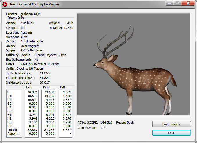 GAME SERVERS IP ADDRESS Granddad(GDL)82.36.51.239 Open 24/7 Please use ENGLISH when talking on server thank u. HI IF ANY ONE INCLUDING NON MEMBERS KILL A WR. EXPORT IT AND SEND IT IN AND WE WILL POST IT ON WEBSITE. SEND TO EITHER EMAILS ON FRONT WEBSITE. DH2005 GAME SERVER IP.. 82.36.51.239 IS OPEN TO ALL . SEE IF YOU CAN BEAT THE SCORE ON SCREEN AND GET YOUR KILL UP THERE FOR THE DAY. SCORE RESETS MIDNIGHT. Hi if your dh2005 v 1.2 does not play full screen replace aspen. dll and stags head in game folder, with aspen .dll and stags head in the patch found in downloads. HI WE HAVE SAT NIGHT HUNTS FROM 7PM UK TIME USING 5 STANDARD MAPS. IF YOU WANT TO JOIN IN PLEASE DO SO. WE ALSO HAVE WEEKLY COMPETITIONS FOR FUN, ANY IDEAS WELCOME. MEMBERSHIP AND DOWNLOADS ARE FREE. MEMBERSHIP IS JUST A FEW SIMPLE STEPS . THANK YOU FROM ALL AT (GDL). Hunter Skills by beardy The Game by beardy Hunting Tips by beardy WR/RB, Top Weight/Value Chart by beardy Rarity chart by beardy How To Export Trophies by granddad Golden Skins by beardy Trophies by beardy Rankings by beardy Hotspots by beardy How to install Teamspeak 3 by granddad DH 2005 Servers IP by granddad | Game sever ip 82.43.121.61 We are looking for members to keep the game running it's FREE just email grahammerrifield@gmail.com to say u would like to join.Our game server is open 24/7 to any 1. FEE to play on so come and see if you can get your name up in light's with best kill.Hope to see u soon. 82.43.121.61
