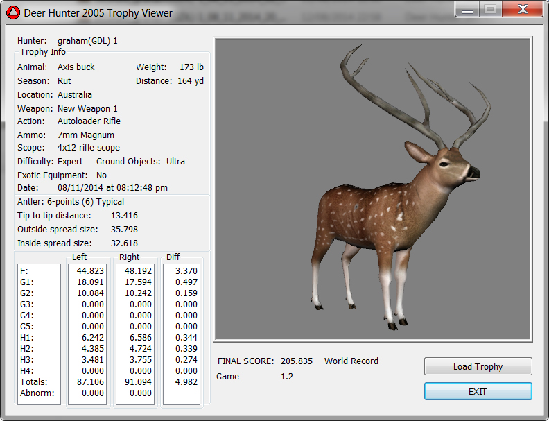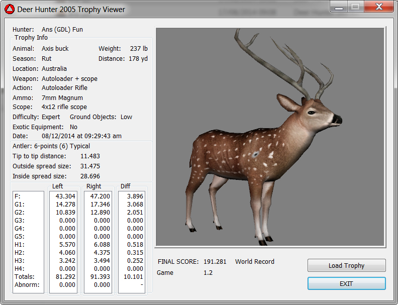 GAME SERVERS IP ADDRESS Granddad(GDL)82.36.51.239 Open 24/7 Please use ENGLISH when talking on server thank u. HI IF ANY ONE INCLUDING NON MEMBERS KILL A WR. EXPORT IT AND SEND IT IN AND WE WILL POST IT ON WEBSITE. SEND TO EITHER EMAILS ON FRONT WEBSITE. DH2005 GAME SERVER IP.. 82.36.51.239 IS OPEN TO ALL . SEE IF YOU CAN BEAT THE SCORE ON SCREEN AND GET YOUR KILL UP THERE FOR THE DAY. SCORE RESETS MIDNIGHT. Hi if your dh2005 v 1.2 does not play full screen replace aspen. dll and stags head in game folder, with aspen .dll and stags head in the patch found in downloads. HI WE HAVE SAT NIGHT HUNTS FROM 7PM UK TIME USING 5 STANDARD MAPS. IF YOU WANT TO JOIN IN PLEASE DO SO. WE ALSO HAVE WEEKLY COMPETITIONS FOR FUN, ANY IDEAS WELCOME. MEMBERSHIP AND DOWNLOADS ARE FREE. MEMBERSHIP IS JUST A FEW SIMPLE STEPS . THANK YOU FROM ALL AT (GDL). Hunter Skills by beardy The Game by beardy Hunting Tips by beardy WR/RB, Top Weight/Value Chart by beardy Rarity chart by beardy How To Export Trophies by granddad Golden Skins by beardy Trophies by beardy Rankings by beardy Hotspots by beardy How to install Teamspeak 3 by granddad DH 2005 Servers IP by granddad | Game sever ip 82.43.121.61 We are looking for members to keep the game running it's FREE just email grahammerrifield@gmail.com to say u would like to join.Our game server is open 24/7 to any 1. FEE to play on so come and see if you can get your name up in light's with best kill.Hope to see u soon. 82.43.121.61