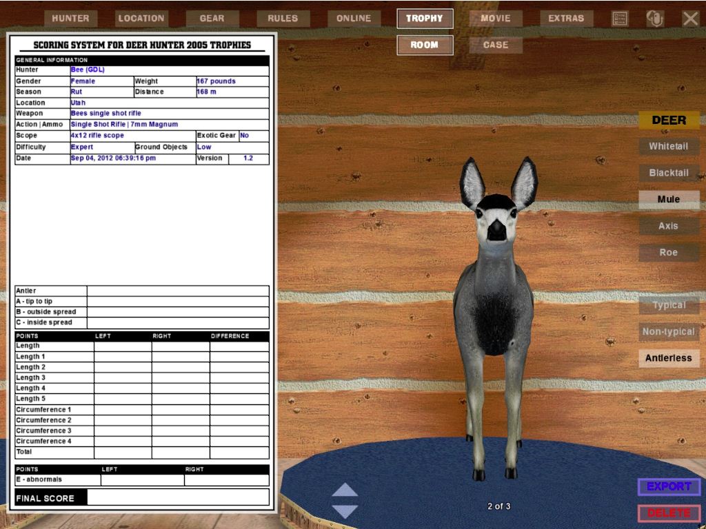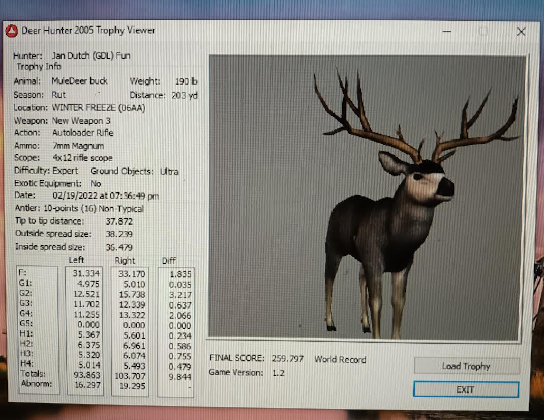 GAME SERVERS IP ADDRESS Granddad(GDL)82.36.51.239 Open 24/7 Please use ENGLISH when talking on server thank u. HI IF ANY ONE INCLUDING NON MEMBERS KILL A WR. EXPORT IT AND SEND IT IN AND WE WILL POST IT ON WEBSITE. SEND TO EITHER EMAILS ON FRONT WEBSITE. DH2005 GAME SERVER IP.. 82.36.51.239 IS OPEN TO ALL . SEE IF YOU CAN BEAT THE SCORE ON SCREEN AND GET YOUR KILL UP THERE FOR THE DAY. SCORE RESETS MIDNIGHT. Hi if your dh2005 v 1.2 does not play full screen replace aspen. dll and stags head in game folder, with aspen .dll and stags head in the patch found in downloads. HI WE HAVE SAT NIGHT HUNTS FROM 7PM UK TIME USING 5 STANDARD MAPS. IF YOU WANT TO JOIN IN PLEASE DO SO. WE ALSO HAVE WEEKLY COMPETITIONS FOR FUN, ANY IDEAS WELCOME. MEMBERSHIP AND DOWNLOADS ARE FREE. MEMBERSHIP IS JUST A FEW SIMPLE STEPS . THANK YOU FROM ALL AT (GDL). Hunter Skills by beardy The Game by beardy Hunting Tips by beardy WR/RB, Top Weight/Value Chart by beardy Rarity chart by beardy How To Export Trophies by granddad Golden Skins by beardy Trophies by beardy Rankings by beardy Hotspots by beardy How to install Teamspeak 3 by granddad DH 2005 Servers IP by granddad | Game sever ip 82.43.121.61 We are looking for members to keep the game running it's FREE just email grahammerrifield@gmail.com to say u would like to join.Our game server is open 24/7 to any 1. FEE to play on so come and see if you can get your name up in light's with best kill.Hope to see u soon. 82.43.121.61