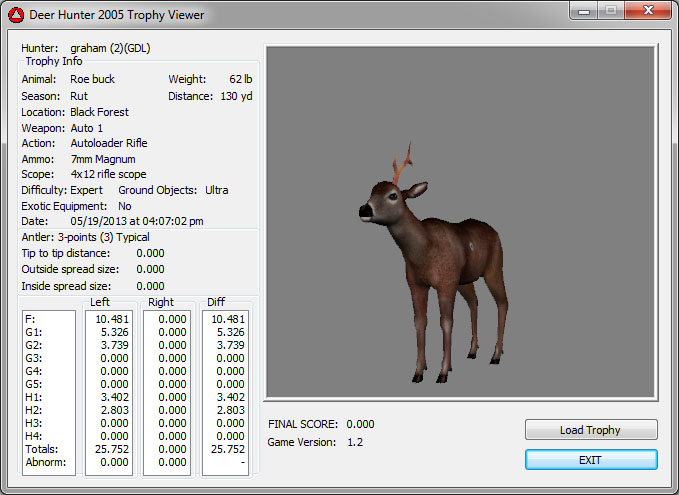 GAME SERVERS IP ADDRESS Granddad(GDL)82.36.51.239 Open 24/7 Please use ENGLISH when talking on server thank u. HI IF ANY ONE INCLUDING NON MEMBERS KILL A WR. EXPORT IT AND SEND IT IN AND WE WILL POST IT ON WEBSITE. SEND TO EITHER EMAILS ON FRONT WEBSITE. DH2005 GAME SERVER IP.. 82.36.51.239 IS OPEN TO ALL . SEE IF YOU CAN BEAT THE SCORE ON SCREEN AND GET YOUR KILL UP THERE FOR THE DAY. SCORE RESETS MIDNIGHT. Hi if your dh2005 v 1.2 does not play full screen replace aspen. dll and stags head in game folder, with aspen .dll and stags head in the patch found in downloads. HI WE HAVE SAT NIGHT HUNTS FROM 7PM UK TIME USING 5 STANDARD MAPS. IF YOU WANT TO JOIN IN PLEASE DO SO. WE ALSO HAVE WEEKLY COMPETITIONS FOR FUN, ANY IDEAS WELCOME. MEMBERSHIP AND DOWNLOADS ARE FREE. MEMBERSHIP IS JUST A FEW SIMPLE STEPS . THANK YOU FROM ALL AT (GDL). Hunter Skills by beardy The Game by beardy Hunting Tips by beardy WR/RB, Top Weight/Value Chart by beardy Rarity chart by beardy How To Export Trophies by granddad Golden Skins by beardy Trophies by beardy Rankings by beardy Hotspots by beardy How to install Teamspeak 3 by granddad DH 2005 Servers IP by granddad | Game sever ip 82.43.121.61 We are looking for members to keep the game running it's FREE just email grahammerrifield@gmail.com to say u would like to join.Our game server is open 24/7 to any 1. FEE to play on so come and see if you can get your name up in light's with best kill.Hope to see u soon. 82.43.121.61