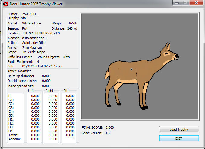 GAME SERVERS IP ADDRESS Granddad(GDL)82.36.51.239 Open 24/7 Please use ENGLISH when talking on server thank u. HI IF ANY ONE INCLUDING NON MEMBERS KILL A WR. EXPORT IT AND SEND IT IN AND WE WILL POST IT ON WEBSITE. SEND TO EITHER EMAILS ON FRONT WEBSITE. DH2005 GAME SERVER IP.. 82.36.51.239 IS OPEN TO ALL . SEE IF YOU CAN BEAT THE SCORE ON SCREEN AND GET YOUR KILL UP THERE FOR THE DAY. SCORE RESETS MIDNIGHT. Hi if your dh2005 v 1.2 does not play full screen replace aspen. dll and stags head in game folder, with aspen .dll and stags head in the patch found in downloads. HI WE HAVE SAT NIGHT HUNTS FROM 7PM UK TIME USING 5 STANDARD MAPS. IF YOU WANT TO JOIN IN PLEASE DO SO. WE ALSO HAVE WEEKLY COMPETITIONS FOR FUN, ANY IDEAS WELCOME. MEMBERSHIP AND DOWNLOADS ARE FREE. MEMBERSHIP IS JUST A FEW SIMPLE STEPS . THANK YOU FROM ALL AT (GDL). Hunter Skills by beardy The Game by beardy Hunting Tips by beardy WR/RB, Top Weight/Value Chart by beardy Rarity chart by beardy How To Export Trophies by granddad Golden Skins by beardy Trophies by beardy Rankings by beardy Hotspots by beardy How to install Teamspeak 3 by granddad DH 2005 Servers IP by granddad | Game sever ip 82.43.121.61 We are looking for members to keep the game running it's FREE just email grahammerrifield@gmail.com to say u would like to join.Our game server is open 24/7 to any 1. FEE to play on so come and see if you can get your name up in light's with best kill.Hope to see u soon. 82.43.121.61