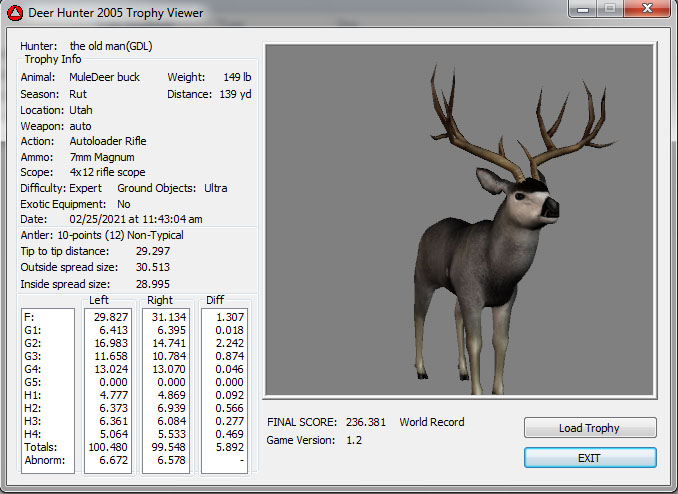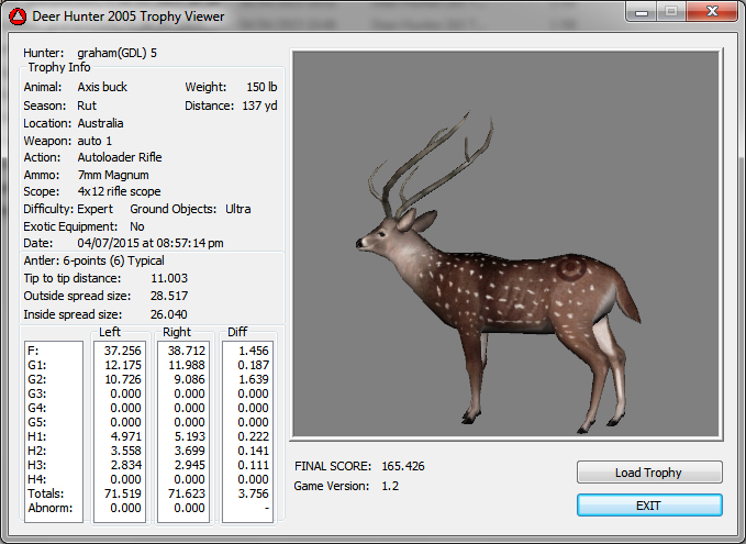 GAME SERVERS IP ADDRESS Granddad(GDL)82.36.51.239 Open 24/7 Please use ENGLISH when talking on server thank u. HI IF ANY ONE INCLUDING NON MEMBERS KILL A WR. EXPORT IT AND SEND IT IN AND WE WILL POST IT ON WEBSITE. SEND TO EITHER EMAILS ON FRONT WEBSITE. DH2005 GAME SERVER IP.. 82.36.51.239 IS OPEN TO ALL . SEE IF YOU CAN BEAT THE SCORE ON SCREEN AND GET YOUR KILL UP THERE FOR THE DAY. SCORE RESETS MIDNIGHT. Hi if your dh2005 v 1.2 does not play full screen replace aspen. dll and stags head in game folder, with aspen .dll and stags head in the patch found in downloads. HI WE HAVE SAT NIGHT HUNTS FROM 7PM UK TIME USING 5 STANDARD MAPS. IF YOU WANT TO JOIN IN PLEASE DO SO. WE ALSO HAVE WEEKLY COMPETITIONS FOR FUN, ANY IDEAS WELCOME. MEMBERSHIP AND DOWNLOADS ARE FREE. MEMBERSHIP IS JUST A FEW SIMPLE STEPS . THANK YOU FROM ALL AT (GDL). Hunter Skills by beardy The Game by beardy Hunting Tips by beardy WR/RB, Top Weight/Value Chart by beardy Rarity chart by beardy How To Export Trophies by granddad Golden Skins by beardy Trophies by beardy Rankings by beardy Hotspots by beardy How to install Teamspeak 3 by granddad DH 2005 Servers IP by granddad | Game sever ip 82.43.121.61 We are looking for members to keep the game running it's FREE just email grahammerrifield@gmail.com to say u would like to join.Our game server is open 24/7 to any 1. FEE to play on so come and see if you can get your name up in light's with best kill.Hope to see u soon. 82.43.121.61