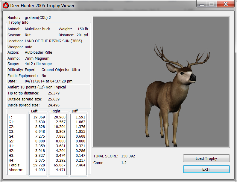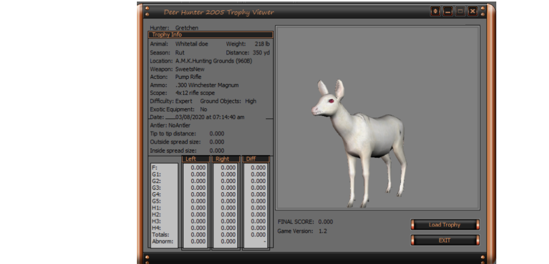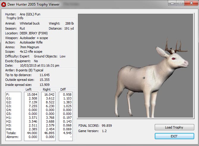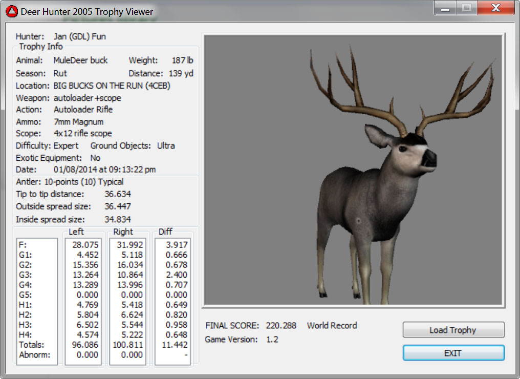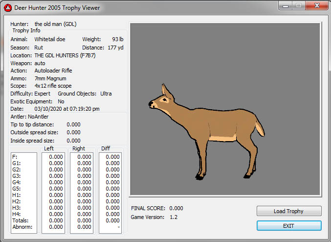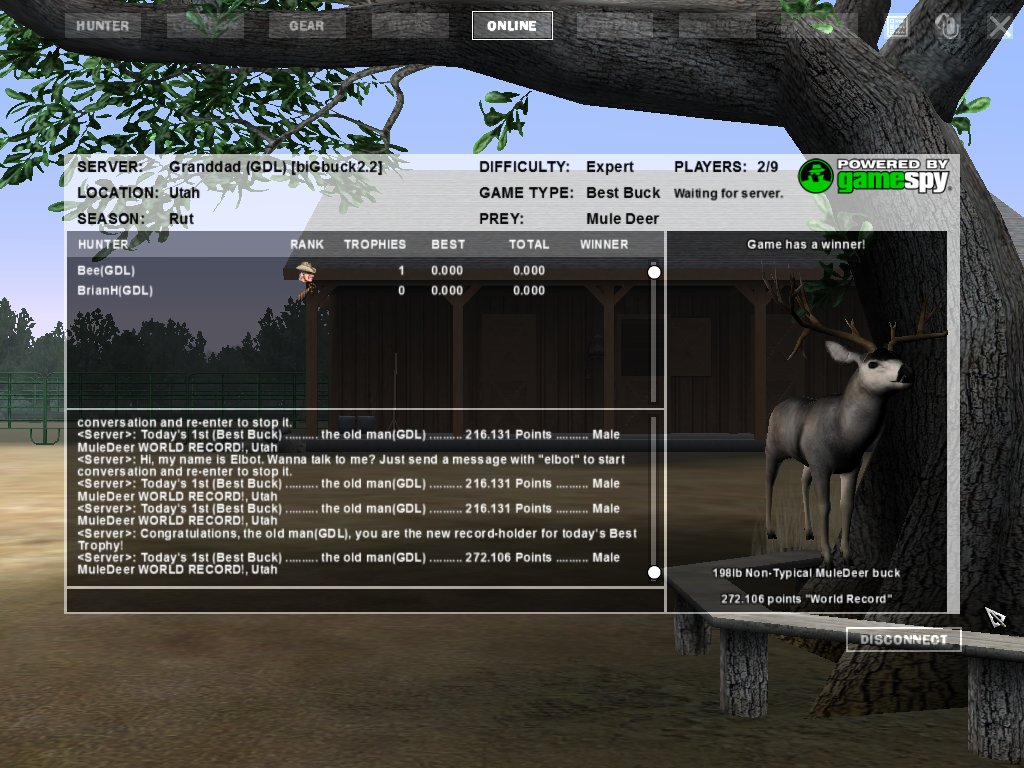 GAME SERVERS IP ADDRESS Granddad(GDL)82.36.51.239 Open 24/7 Please use ENGLISH when talking on server thank u. HI IF ANY ONE INCLUDING NON MEMBERS KILL A WR. EXPORT IT AND SEND IT IN AND WE WILL POST IT ON WEBSITE. SEND TO EITHER EMAILS ON FRONT WEBSITE. DH2005 GAME SERVER IP.. 82.36.51.239 IS OPEN TO ALL . SEE IF YOU CAN BEAT THE SCORE ON SCREEN AND GET YOUR KILL UP THERE FOR THE DAY. SCORE RESETS MIDNIGHT. Hi if your dh2005 v 1.2 does not play full screen replace aspen. dll and stags head in game folder, with aspen .dll and stags head in the patch found in downloads. HI WE HAVE SAT NIGHT HUNTS FROM 7PM UK TIME USING 5 STANDARD MAPS. IF YOU WANT TO JOIN IN PLEASE DO SO. WE ALSO HAVE WEEKLY COMPETITIONS FOR FUN, ANY IDEAS WELCOME. MEMBERSHIP AND DOWNLOADS ARE FREE. MEMBERSHIP IS JUST A FEW SIMPLE STEPS . THANK YOU FROM ALL AT (GDL). Hunter Skills by beardy The Game by beardy Hunting Tips by beardy WR/RB, Top Weight/Value Chart by beardy Rarity chart by beardy How To Export Trophies by granddad Golden Skins by beardy Trophies by beardy Rankings by beardy Hotspots by beardy How to install Teamspeak 3 by granddad DH 2005 Servers IP by granddad | Game sever ip 82.43.121.61 We are looking for members to keep the game running it's FREE just email grahammerrifield@gmail.com to say u would like to join.Our game server is open 24/7 to any 1. FEE to play on so come and see if you can get your name up in light's with best kill.Hope to see u soon. 82.43.121.61