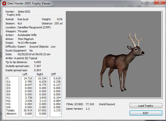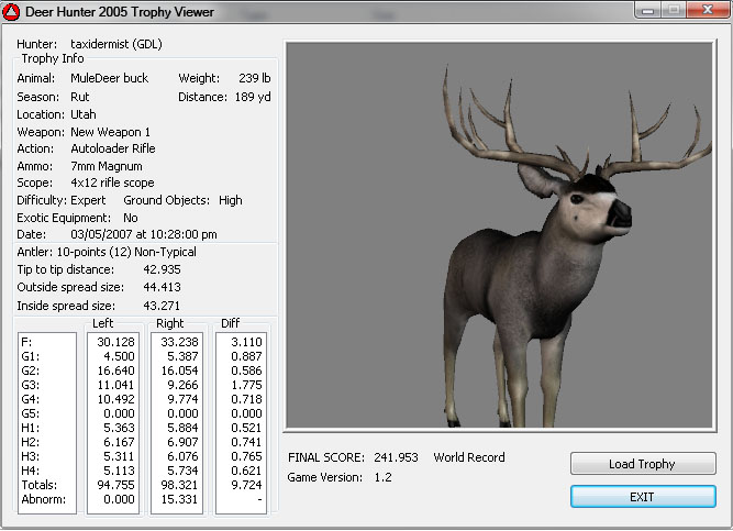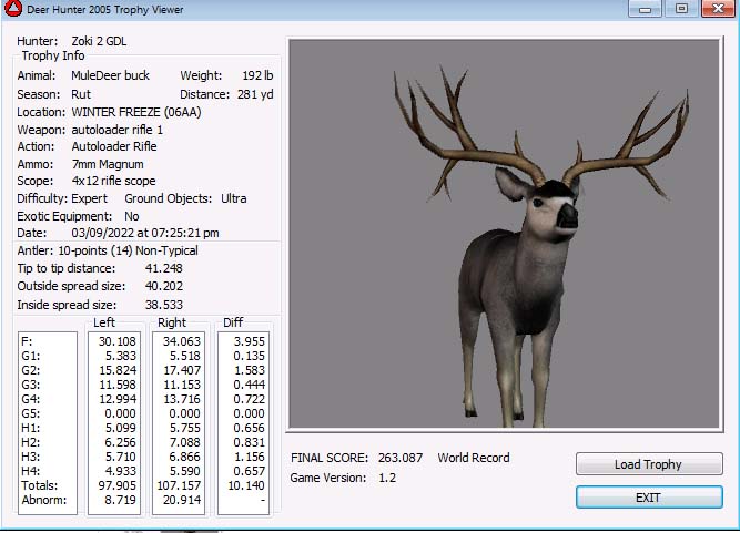 GAME SERVERS IP ADDRESS Granddad(GDL)82.36.51.239 Open 24/7 Please use ENGLISH when talking on server thank u. HI IF ANY ONE INCLUDING NON MEMBERS KILL A WR. EXPORT IT AND SEND IT IN AND WE WILL POST IT ON WEBSITE. SEND TO EITHER EMAILS ON FRONT WEBSITE. DH2005 GAME SERVER IP.. 82.36.51.239 IS OPEN TO ALL . SEE IF YOU CAN BEAT THE SCORE ON SCREEN AND GET YOUR KILL UP THERE FOR THE DAY. SCORE RESETS MIDNIGHT. Hi if your dh2005 v 1.2 does not play full screen replace aspen. dll and stags head in game folder, with aspen .dll and stags head in the patch found in downloads. HI WE HAVE SAT NIGHT HUNTS FROM 7PM UK TIME USING 5 STANDARD MAPS. IF YOU WANT TO JOIN IN PLEASE DO SO. WE ALSO HAVE WEEKLY COMPETITIONS FOR FUN, ANY IDEAS WELCOME. MEMBERSHIP AND DOWNLOADS ARE FREE. MEMBERSHIP IS JUST A FEW SIMPLE STEPS . THANK YOU FROM ALL AT (GDL). Hunter Skills by beardy The Game by beardy Hunting Tips by beardy WR/RB, Top Weight/Value Chart by beardy Rarity chart by beardy How To Export Trophies by granddad Golden Skins by beardy Trophies by beardy Rankings by beardy Hotspots by beardy How to install Teamspeak 3 by granddad DH 2005 Servers IP by granddad | Game sever ip 82.43.121.61 We are looking for members to keep the game running it's FREE just email grahammerrifield@gmail.com to say u would like to join.Our game server is open 24/7 to any 1. FEE to play on so come and see if you can get your name up in light's with best kill.Hope to see u soon. 82.43.121.61