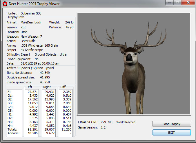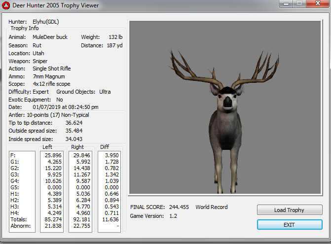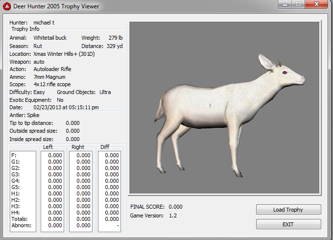 GAME SERVERS IP ADDRESS Granddad(GDL)82.36.51.239 Open 24/7 Please use ENGLISH when talking on server thank u. HI IF ANY ONE INCLUDING NON MEMBERS KILL A WR. EXPORT IT AND SEND IT IN AND WE WILL POST IT ON WEBSITE. SEND TO EITHER EMAILS ON FRONT WEBSITE. DH2005 GAME SERVER IP.. 82.36.51.239 IS OPEN TO ALL . SEE IF YOU CAN BEAT THE SCORE ON SCREEN AND GET YOUR KILL UP THERE FOR THE DAY. SCORE RESETS MIDNIGHT. Hi if your dh2005 v 1.2 does not play full screen replace aspen. dll and stags head in game folder, with aspen .dll and stags head in the patch found in downloads. HI WE HAVE SAT NIGHT HUNTS FROM 7PM UK TIME USING 5 STANDARD MAPS. IF YOU WANT TO JOIN IN PLEASE DO SO. WE ALSO HAVE WEEKLY COMPETITIONS FOR FUN, ANY IDEAS WELCOME. MEMBERSHIP AND DOWNLOADS ARE FREE. MEMBERSHIP IS JUST A FEW SIMPLE STEPS . THANK YOU FROM ALL AT (GDL). Hunter Skills by beardy The Game by beardy Hunting Tips by beardy WR/RB, Top Weight/Value Chart by beardy Rarity chart by beardy How To Export Trophies by granddad Golden Skins by beardy Trophies by beardy Rankings by beardy Hotspots by beardy How to install Teamspeak 3 by granddad DH 2005 Servers IP by granddad | Game sever ip 82.43.121.61 We are looking for members to keep the game running it's FREE just email grahammerrifield@gmail.com to say u would like to join.Our game server is open 24/7 to any 1. FEE to play on so come and see if you can get your name up in light's with best kill.Hope to see u soon. 82.43.121.61