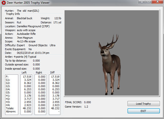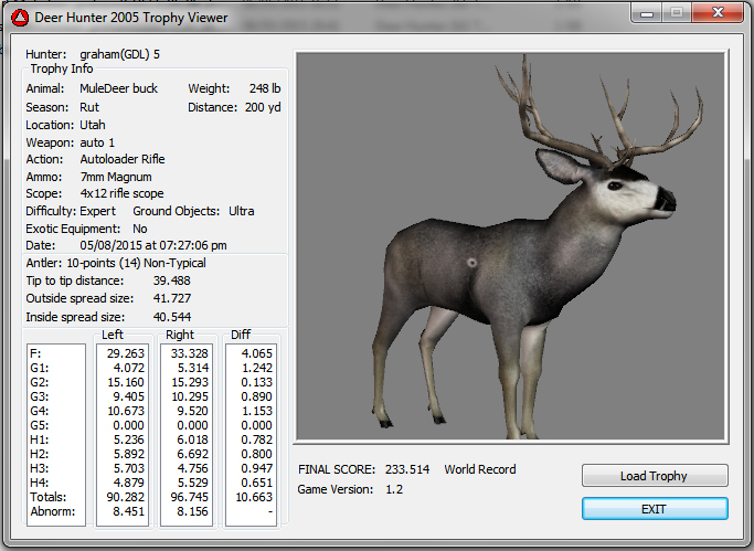 GAME SERVERS IP ADDRESS Granddad(GDL)82.36.51.239 Open 24/7 Please use ENGLISH when talking on server thank u. HI IF ANY ONE INCLUDING NON MEMBERS KILL A WR. EXPORT IT AND SEND IT IN AND WE WILL POST IT ON WEBSITE. SEND TO EITHER EMAILS ON FRONT WEBSITE. DH2005 GAME SERVER IP.. 82.36.51.239 IS OPEN TO ALL . SEE IF YOU CAN BEAT THE SCORE ON SCREEN AND GET YOUR KILL UP THERE FOR THE DAY. SCORE RESETS MIDNIGHT. Hi if your dh2005 v 1.2 does not play full screen replace aspen. dll and stags head in game folder, with aspen .dll and stags head in the patch found in downloads. HI WE HAVE SAT NIGHT HUNTS FROM 7PM UK TIME USING 5 STANDARD MAPS. IF YOU WANT TO JOIN IN PLEASE DO SO. WE ALSO HAVE WEEKLY COMPETITIONS FOR FUN, ANY IDEAS WELCOME. MEMBERSHIP AND DOWNLOADS ARE FREE. MEMBERSHIP IS JUST A FEW SIMPLE STEPS . THANK YOU FROM ALL AT (GDL). Hunter Skills by beardy The Game by beardy Hunting Tips by beardy WR/RB, Top Weight/Value Chart by beardy Rarity chart by beardy How To Export Trophies by granddad Golden Skins by beardy Trophies by beardy Rankings by beardy Hotspots by beardy How to install Teamspeak 3 by granddad DH 2005 Servers IP by granddad | Game sever ip 82.43.121.61 We are looking for members to keep the game running it's FREE just email grahammerrifield@gmail.com to say u would like to join.Our game server is open 24/7 to any 1. FEE to play on so come and see if you can get your name up in light's with best kill.Hope to see u soon. 82.43.121.61
