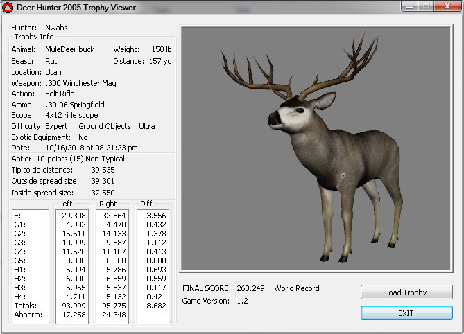 GAME SERVERS IP ADDRESS Granddad(GDL)82.36.51.239 Open 24/7 Please use ENGLISH when talking on server thank u. HI IF ANY ONE INCLUDING NON MEMBERS KILL A WR. EXPORT IT AND SEND IT IN AND WE WILL POST IT ON WEBSITE. SEND TO EITHER EMAILS ON FRONT WEBSITE. DH2005 GAME SERVER IP.. 82.36.51.239 IS OPEN TO ALL . SEE IF YOU CAN BEAT THE SCORE ON SCREEN AND GET YOUR KILL UP THERE FOR THE DAY. SCORE RESETS MIDNIGHT. Hi if your dh2005 v 1.2 does not play full screen replace aspen. dll and stags head in game folder, with aspen .dll and stags head in the patch found in downloads. HI WE HAVE SAT NIGHT HUNTS FROM 7PM UK TIME USING 5 STANDARD MAPS. IF YOU WANT TO JOIN IN PLEASE DO SO. WE ALSO HAVE WEEKLY COMPETITIONS FOR FUN, ANY IDEAS WELCOME. MEMBERSHIP AND DOWNLOADS ARE FREE. MEMBERSHIP IS JUST A FEW SIMPLE STEPS . THANK YOU FROM ALL AT (GDL). Hunter Skills by beardy The Game by beardy Hunting Tips by beardy WR/RB, Top Weight/Value Chart by beardy Rarity chart by beardy How To Export Trophies by granddad Golden Skins by beardy Trophies by beardy Rankings by beardy Hotspots by beardy How to install Teamspeak 3 by granddad DH 2005 Servers IP by granddad | Game sever ip 82.43.121.61 We are looking for members to keep the game running it's FREE just email grahammerrifield@gmail.com to say u would like to join.Our game server is open 24/7 to any 1. FEE to play on so come and see if you can get your name up in light's with best kill.Hope to see u soon. 82.43.121.61