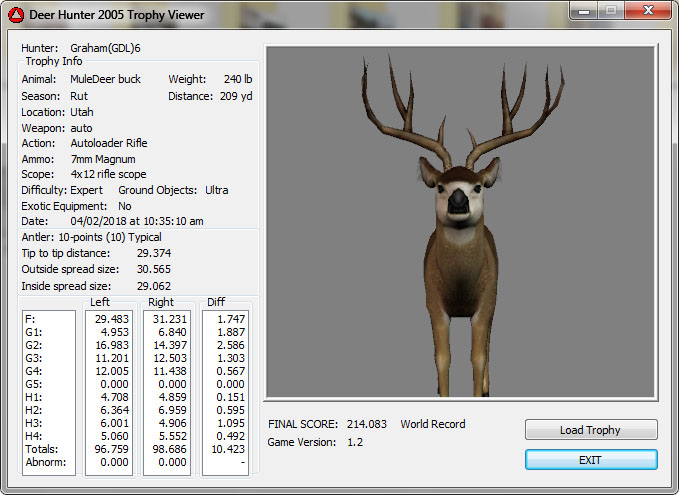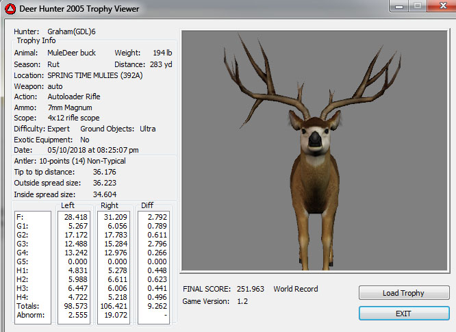 GAME SERVERS IP ADDRESS Granddad(GDL)82.36.51.239 Open 24/7 Please use ENGLISH when talking on server thank u. HI IF ANY ONE INCLUDING NON MEMBERS KILL A WR. EXPORT IT AND SEND IT IN AND WE WILL POST IT ON WEBSITE. SEND TO EITHER EMAILS ON FRONT WEBSITE. DH2005 GAME SERVER IP.. 82.36.51.239 IS OPEN TO ALL . SEE IF YOU CAN BEAT THE SCORE ON SCREEN AND GET YOUR KILL UP THERE FOR THE DAY. SCORE RESETS MIDNIGHT. Hi if your dh2005 v 1.2 does not play full screen replace aspen. dll and stags head in game folder, with aspen .dll and stags head in the patch found in downloads. HI WE HAVE SAT NIGHT HUNTS FROM 7PM UK TIME USING 5 STANDARD MAPS. IF YOU WANT TO JOIN IN PLEASE DO SO. WE ALSO HAVE WEEKLY COMPETITIONS FOR FUN, ANY IDEAS WELCOME. MEMBERSHIP AND DOWNLOADS ARE FREE. MEMBERSHIP IS JUST A FEW SIMPLE STEPS . THANK YOU FROM ALL AT (GDL). Hunter Skills by beardy The Game by beardy Hunting Tips by beardy WR/RB, Top Weight/Value Chart by beardy Rarity chart by beardy How To Export Trophies by granddad Golden Skins by beardy Trophies by beardy Rankings by beardy Hotspots by beardy How to install Teamspeak 3 by granddad DH 2005 Servers IP by granddad | Game sever ip 82.43.121.61 We are looking for members to keep the game running it's FREE just email grahammerrifield@gmail.com to say u would like to join.Our game server is open 24/7 to any 1. FEE to play on so come and see if you can get your name up in light's with best kill.Hope to see u soon. 82.43.121.61