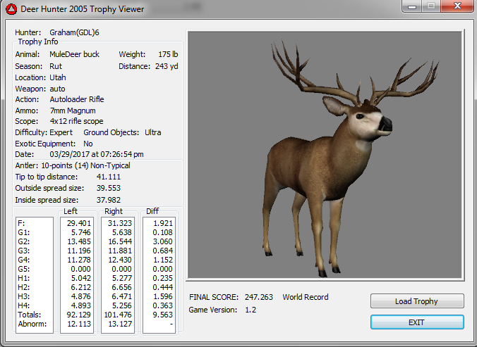 GAME SERVERS IP ADDRESS Granddad(GDL)82.36.51.239 Open 24/7 Please use ENGLISH when talking on server thank u. HI IF ANY ONE INCLUDING NON MEMBERS KILL A WR. EXPORT IT AND SEND IT IN AND WE WILL POST IT ON WEBSITE. SEND TO EITHER EMAILS ON FRONT WEBSITE. DH2005 GAME SERVER IP.. 82.36.51.239 IS OPEN TO ALL . SEE IF YOU CAN BEAT THE SCORE ON SCREEN AND GET YOUR KILL UP THERE FOR THE DAY. SCORE RESETS MIDNIGHT. Hi if your dh2005 v 1.2 does not play full screen replace aspen. dll and stags head in game folder, with aspen .dll and stags head in the patch found in downloads. HI WE HAVE SAT NIGHT HUNTS FROM 7PM UK TIME USING 5 STANDARD MAPS. IF YOU WANT TO JOIN IN PLEASE DO SO. WE ALSO HAVE WEEKLY COMPETITIONS FOR FUN, ANY IDEAS WELCOME. MEMBERSHIP AND DOWNLOADS ARE FREE. MEMBERSHIP IS JUST A FEW SIMPLE STEPS . THANK YOU FROM ALL AT (GDL). Hunter Skills by beardy The Game by beardy Hunting Tips by beardy WR/RB, Top Weight/Value Chart by beardy Rarity chart by beardy How To Export Trophies by granddad Golden Skins by beardy Trophies by beardy Rankings by beardy Hotspots by beardy How to install Teamspeak 3 by granddad DH 2005 Servers IP by granddad | Game sever ip 82.43.121.61 We are looking for members to keep the game running it's FREE just email grahammerrifield@gmail.com to say u would like to join.Our game server is open 24/7 to any 1. FEE to play on so come and see if you can get your name up in light's with best kill.Hope to see u soon. 82.43.121.61