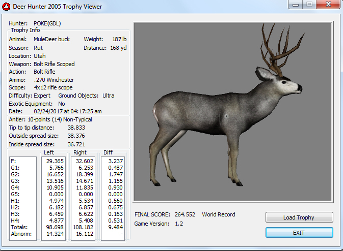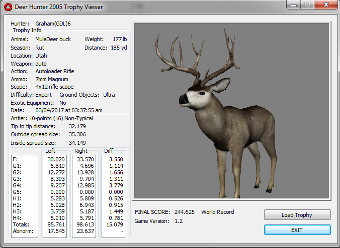 GAME SERVERS IP ADDRESS Granddad(GDL)82.36.51.239 Open 24/7 Please use ENGLISH when talking on server thank u. HI IF ANY ONE INCLUDING NON MEMBERS KILL A WR. EXPORT IT AND SEND IT IN AND WE WILL POST IT ON WEBSITE. SEND TO EITHER EMAILS ON FRONT WEBSITE. DH2005 GAME SERVER IP.. 82.36.51.239 IS OPEN TO ALL . SEE IF YOU CAN BEAT THE SCORE ON SCREEN AND GET YOUR KILL UP THERE FOR THE DAY. SCORE RESETS MIDNIGHT. Hi if your dh2005 v 1.2 does not play full screen replace aspen. dll and stags head in game folder, with aspen .dll and stags head in the patch found in downloads. HI WE HAVE SAT NIGHT HUNTS FROM 7PM UK TIME USING 5 STANDARD MAPS. IF YOU WANT TO JOIN IN PLEASE DO SO. WE ALSO HAVE WEEKLY COMPETITIONS FOR FUN, ANY IDEAS WELCOME. MEMBERSHIP AND DOWNLOADS ARE FREE. MEMBERSHIP IS JUST A FEW SIMPLE STEPS . THANK YOU FROM ALL AT (GDL). Hunter Skills by beardy The Game by beardy Hunting Tips by beardy WR/RB, Top Weight/Value Chart by beardy Rarity chart by beardy How To Export Trophies by granddad Golden Skins by beardy Trophies by beardy Rankings by beardy Hotspots by beardy How to install Teamspeak 3 by granddad DH 2005 Servers IP by granddad | Game sever ip 82.43.121.61 We are looking for members to keep the game running it's FREE just email grahammerrifield@gmail.com to say u would like to join.Our game server is open 24/7 to any 1. FEE to play on so come and see if you can get your name up in light's with best kill.Hope to see u soon. 82.43.121.61