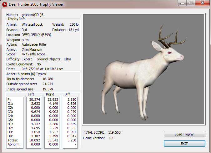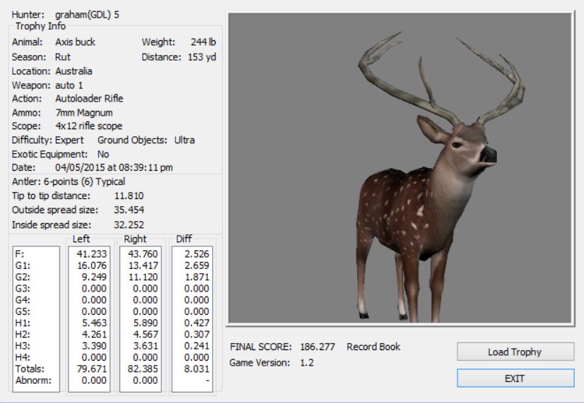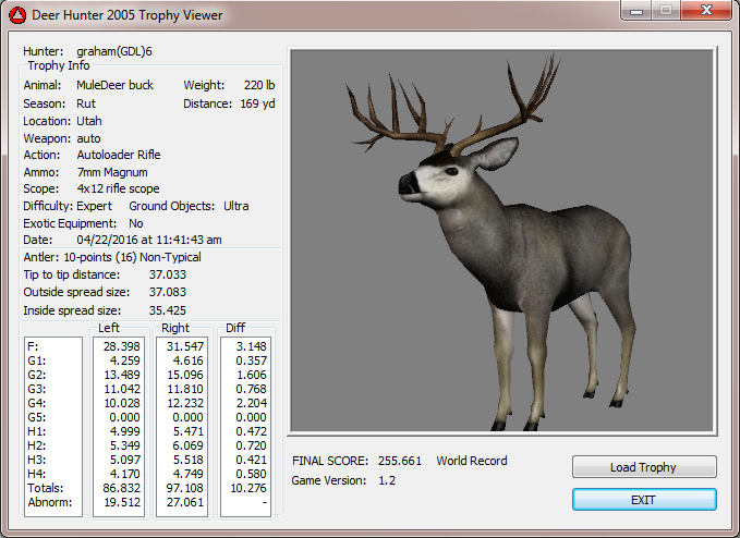 GAME SERVERS IP ADDRESS Granddad(GDL)82.36.51.239 Open 24/7 Please use ENGLISH when talking on server thank u. HI IF ANY ONE INCLUDING NON MEMBERS KILL A WR. EXPORT IT AND SEND IT IN AND WE WILL POST IT ON WEBSITE. SEND TO EITHER EMAILS ON FRONT WEBSITE. DH2005 GAME SERVER IP.. 82.36.51.239 IS OPEN TO ALL . SEE IF YOU CAN BEAT THE SCORE ON SCREEN AND GET YOUR KILL UP THERE FOR THE DAY. SCORE RESETS MIDNIGHT. Hi if your dh2005 v 1.2 does not play full screen replace aspen. dll and stags head in game folder, with aspen .dll and stags head in the patch found in downloads. HI WE HAVE SAT NIGHT HUNTS FROM 7PM UK TIME USING 5 STANDARD MAPS. IF YOU WANT TO JOIN IN PLEASE DO SO. WE ALSO HAVE WEEKLY COMPETITIONS FOR FUN, ANY IDEAS WELCOME. MEMBERSHIP AND DOWNLOADS ARE FREE. MEMBERSHIP IS JUST A FEW SIMPLE STEPS . THANK YOU FROM ALL AT (GDL). Hunter Skills by beardy The Game by beardy Hunting Tips by beardy WR/RB, Top Weight/Value Chart by beardy Rarity chart by beardy How To Export Trophies by granddad Golden Skins by beardy Trophies by beardy Rankings by beardy Hotspots by beardy How to install Teamspeak 3 by granddad DH 2005 Servers IP by granddad | Game sever ip 82.43.121.61 We are looking for members to keep the game running it's FREE just email grahammerrifield@gmail.com to say u would like to join.Our game server is open 24/7 to any 1. FEE to play on so come and see if you can get your name up in light's with best kill.Hope to see u soon. 82.43.121.61