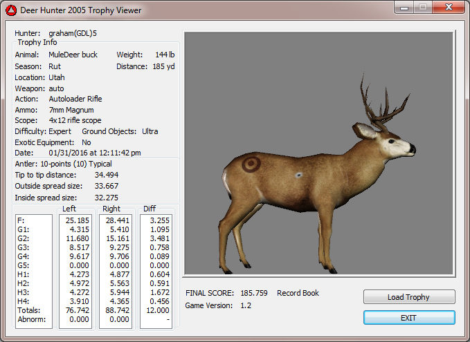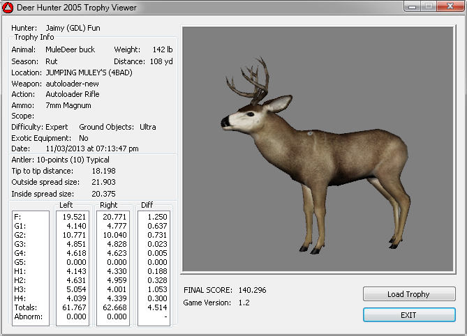 GAME SERVERS IP ADDRESS Granddad(GDL)82.36.51.239 Open 24/7 Please use ENGLISH when talking on server thank u. HI IF ANY ONE INCLUDING NON MEMBERS KILL A WR. EXPORT IT AND SEND IT IN AND WE WILL POST IT ON WEBSITE. SEND TO EITHER EMAILS ON FRONT WEBSITE. DH2005 GAME SERVER IP.. 82.36.51.239 IS OPEN TO ALL . SEE IF YOU CAN BEAT THE SCORE ON SCREEN AND GET YOUR KILL UP THERE FOR THE DAY. SCORE RESETS MIDNIGHT. Hi if your dh2005 v 1.2 does not play full screen replace aspen. dll and stags head in game folder, with aspen .dll and stags head in the patch found in downloads. HI WE HAVE SAT NIGHT HUNTS FROM 7PM UK TIME USING 5 STANDARD MAPS. IF YOU WANT TO JOIN IN PLEASE DO SO. WE ALSO HAVE WEEKLY COMPETITIONS FOR FUN, ANY IDEAS WELCOME. MEMBERSHIP AND DOWNLOADS ARE FREE. MEMBERSHIP IS JUST A FEW SIMPLE STEPS . THANK YOU FROM ALL AT (GDL). Hunter Skills by beardy The Game by beardy Hunting Tips by beardy WR/RB, Top Weight/Value Chart by beardy Rarity chart by beardy How To Export Trophies by granddad Golden Skins by beardy Trophies by beardy Rankings by beardy Hotspots by beardy How to install Teamspeak 3 by granddad DH 2005 Servers IP by granddad | Game sever ip 82.43.121.61 We are looking for members to keep the game running it's FREE just email grahammerrifield@gmail.com to say u would like to join.Our game server is open 24/7 to any 1. FEE to play on so come and see if you can get your name up in light's with best kill.Hope to see u soon. 82.43.121.61