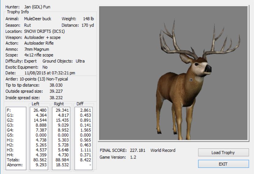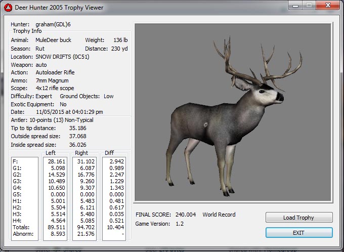 GAME SERVERS IP ADDRESS Granddad(GDL)82.36.51.239 Open 24/7 Please use ENGLISH when talking on server thank u. HI IF ANY ONE INCLUDING NON MEMBERS KILL A WR. EXPORT IT AND SEND IT IN AND WE WILL POST IT ON WEBSITE. SEND TO EITHER EMAILS ON FRONT WEBSITE. DH2005 GAME SERVER IP.. 82.36.51.239 IS OPEN TO ALL . SEE IF YOU CAN BEAT THE SCORE ON SCREEN AND GET YOUR KILL UP THERE FOR THE DAY. SCORE RESETS MIDNIGHT. Hi if your dh2005 v 1.2 does not play full screen replace aspen. dll and stags head in game folder, with aspen .dll and stags head in the patch found in downloads. HI WE HAVE SAT NIGHT HUNTS FROM 7PM UK TIME USING 5 STANDARD MAPS. IF YOU WANT TO JOIN IN PLEASE DO SO. WE ALSO HAVE WEEKLY COMPETITIONS FOR FUN, ANY IDEAS WELCOME. MEMBERSHIP AND DOWNLOADS ARE FREE. MEMBERSHIP IS JUST A FEW SIMPLE STEPS . THANK YOU FROM ALL AT (GDL). Hunter Skills by beardy The Game by beardy Hunting Tips by beardy WR/RB, Top Weight/Value Chart by beardy Rarity chart by beardy How To Export Trophies by granddad Golden Skins by beardy Trophies by beardy Rankings by beardy Hotspots by beardy How to install Teamspeak 3 by granddad DH 2005 Servers IP by granddad | Game sever ip 82.43.121.61 We are looking for members to keep the game running it's FREE just email grahammerrifield@gmail.com to say u would like to join.Our game server is open 24/7 to any 1. FEE to play on so come and see if you can get your name up in light's with best kill.Hope to see u soon. 82.43.121.61