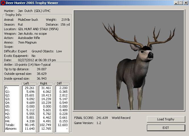 GAME SERVERS IP ADDRESS Granddad(GDL)82.36.51.239 Open 24/7 Please use ENGLISH when talking on server thank u. HI IF ANY ONE INCLUDING NON MEMBERS KILL A WR. EXPORT IT AND SEND IT IN AND WE WILL POST IT ON WEBSITE. SEND TO EITHER EMAILS ON FRONT WEBSITE. DH2005 GAME SERVER IP.. 82.36.51.239 IS OPEN TO ALL . SEE IF YOU CAN BEAT THE SCORE ON SCREEN AND GET YOUR KILL UP THERE FOR THE DAY. SCORE RESETS MIDNIGHT. Hi if your dh2005 v 1.2 does not play full screen replace aspen. dll and stags head in game folder, with aspen .dll and stags head in the patch found in downloads. HI WE HAVE SAT NIGHT HUNTS FROM 7PM UK TIME USING 5 STANDARD MAPS. IF YOU WANT TO JOIN IN PLEASE DO SO. WE ALSO HAVE WEEKLY COMPETITIONS FOR FUN, ANY IDEAS WELCOME. MEMBERSHIP AND DOWNLOADS ARE FREE. MEMBERSHIP IS JUST A FEW SIMPLE STEPS . THANK YOU FROM ALL AT (GDL). Hunter Skills by beardy The Game by beardy Hunting Tips by beardy WR/RB, Top Weight/Value Chart by beardy Rarity chart by beardy How To Export Trophies by granddad Golden Skins by beardy Trophies by beardy Rankings by beardy Hotspots by beardy How to install Teamspeak 3 by granddad DH 2005 Servers IP by granddad | Game sever ip 82.43.121.61 We are looking for members to keep the game running it's FREE just email grahammerrifield@gmail.com to say u would like to join.Our game server is open 24/7 to any 1. FEE to play on so come and see if you can get your name up in light's with best kill.Hope to see u soon. 82.43.121.61