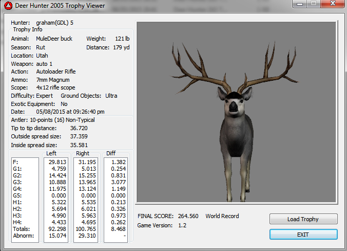 GAME SERVERS IP ADDRESS Granddad(GDL)82.36.51.239 Open 24/7 Please use ENGLISH when talking on server thank u. HI IF ANY ONE INCLUDING NON MEMBERS KILL A WR. EXPORT IT AND SEND IT IN AND WE WILL POST IT ON WEBSITE. SEND TO EITHER EMAILS ON FRONT WEBSITE. DH2005 GAME SERVER IP.. 82.36.51.239 IS OPEN TO ALL . SEE IF YOU CAN BEAT THE SCORE ON SCREEN AND GET YOUR KILL UP THERE FOR THE DAY. SCORE RESETS MIDNIGHT. Hi if your dh2005 v 1.2 does not play full screen replace aspen. dll and stags head in game folder, with aspen .dll and stags head in the patch found in downloads. HI WE HAVE SAT NIGHT HUNTS FROM 7PM UK TIME USING 5 STANDARD MAPS. IF YOU WANT TO JOIN IN PLEASE DO SO. WE ALSO HAVE WEEKLY COMPETITIONS FOR FUN, ANY IDEAS WELCOME. MEMBERSHIP AND DOWNLOADS ARE FREE. MEMBERSHIP IS JUST A FEW SIMPLE STEPS . THANK YOU FROM ALL AT (GDL). Hunter Skills by beardy The Game by beardy Hunting Tips by beardy WR/RB, Top Weight/Value Chart by beardy Rarity chart by beardy How To Export Trophies by granddad Golden Skins by beardy Trophies by beardy Rankings by beardy Hotspots by beardy How to install Teamspeak 3 by granddad DH 2005 Servers IP by granddad | Game sever ip 82.43.121.61 We are looking for members to keep the game running it's FREE just email grahammerrifield@gmail.com to say u would like to join.Our game server is open 24/7 to any 1. FEE to play on so come and see if you can get your name up in light's with best kill.Hope to see u soon. 82.43.121.61