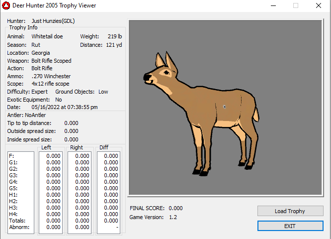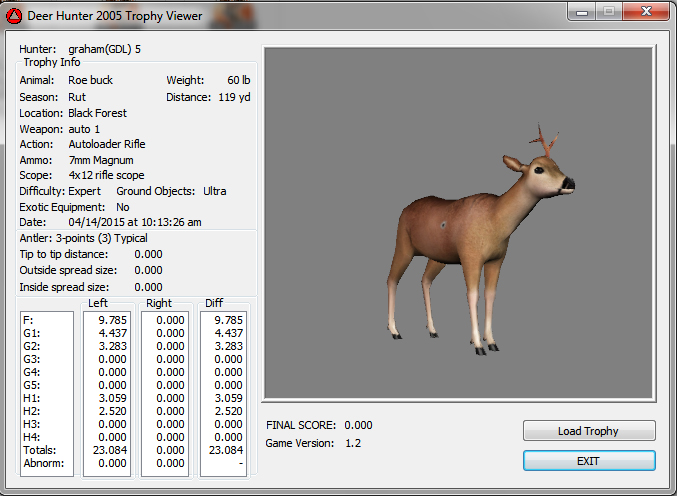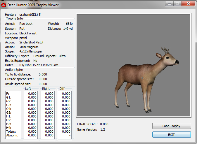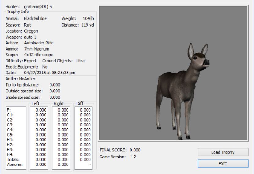GAME SERVERS IP ADDRESS Granddad(GDL)82.36.51.239 Open 24/7 Please use ENGLISH when talking on server thank u. HI IF ANY ONE INCLUDING NON MEMBERS KILL A WR. EXPORT IT AND SEND IT IN AND WE WILL POST IT ON WEBSITE. SEND TO EITHER EMAILS ON FRONT WEBSITE. DH2005 GAME SERVER IP.. 82.36.51.239 IS OPEN TO ALL . SEE IF YOU CAN BEAT THE SCORE ON SCREEN AND GET YOUR KILL UP THERE FOR THE DAY. SCORE RESETS MIDNIGHT. Hi if your dh2005 v 1.2 does not play full screen replace aspen. dll and stags head in game folder, with aspen .dll and stags head in the patch found in downloads. HI WE HAVE SAT NIGHT HUNTS FROM 7PM UK TIME USING 5 STANDARD MAPS. IF YOU WANT TO JOIN IN PLEASE DO SO. WE ALSO HAVE WEEKLY COMPETITIONS FOR FUN, ANY IDEAS WELCOME. MEMBERSHIP AND DOWNLOADS ARE FREE. MEMBERSHIP IS JUST A FEW SIMPLE STEPS . THANK YOU FROM ALL AT (GDL). Hunter Skills by beardy The Game by beardy Hunting Tips by beardy WR/RB, Top Weight/Value Chart by beardy Rarity chart by beardy How To Export Trophies by granddad Golden Skins by beardy Trophies by beardy Rankings by beardy Hotspots by beardy How to install Teamspeak 3 by granddad DH 2005 Servers IP by granddad | Game sever ip 82.43.121.61 We are looking for members to keep the game running it's FREE just email grahammerrifield@gmail.com to say u would like to join.Our game server is open 24/7 to any 1. FEE to play on so come and see if you can get your name up in light's with best kill.Hope to see u soon. 82.43.121.61