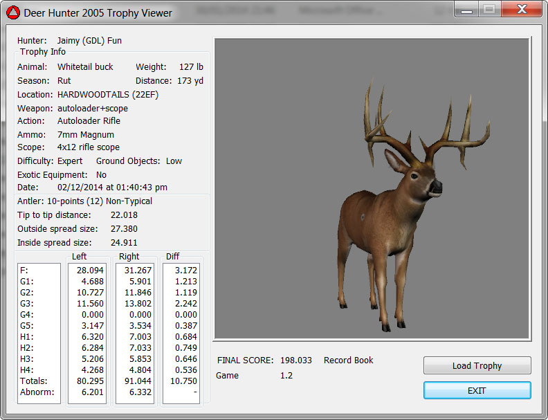 GAME SERVERS IP ADDRESS Granddad(GDL)82.36.51.239 Open 24/7 Please use ENGLISH when talking on server thank u. HI IF ANY ONE INCLUDING NON MEMBERS KILL A WR. EXPORT IT AND SEND IT IN AND WE WILL POST IT ON WEBSITE. SEND TO EITHER EMAILS ON FRONT WEBSITE. DH2005 GAME SERVER IP.. 82.36.51.239 IS OPEN TO ALL . SEE IF YOU CAN BEAT THE SCORE ON SCREEN AND GET YOUR KILL UP THERE FOR THE DAY. SCORE RESETS MIDNIGHT. Hi if your dh2005 v 1.2 does not play full screen replace aspen. dll and stags head in game folder, with aspen .dll and stags head in the patch found in downloads. HI WE HAVE SAT NIGHT HUNTS FROM 7PM UK TIME USING 5 STANDARD MAPS. IF YOU WANT TO JOIN IN PLEASE DO SO. WE ALSO HAVE WEEKLY COMPETITIONS FOR FUN, ANY IDEAS WELCOME. MEMBERSHIP AND DOWNLOADS ARE FREE. MEMBERSHIP IS JUST A FEW SIMPLE STEPS . THANK YOU FROM ALL AT (GDL). Hunter Skills by beardy The Game by beardy Hunting Tips by beardy WR/RB, Top Weight/Value Chart by beardy Rarity chart by beardy How To Export Trophies by granddad Golden Skins by beardy Trophies by beardy Rankings by beardy Hotspots by beardy How to install Teamspeak 3 by granddad DH 2005 Servers IP by granddad | Game sever ip 82.43.121.61 We are looking for members to keep the game running it's FREE just email grahammerrifield@gmail.com to say u would like to join.Our game server is open 24/7 to any 1. FEE to play on so come and see if you can get your name up in light's with best kill.Hope to see u soon. 82.43.121.61