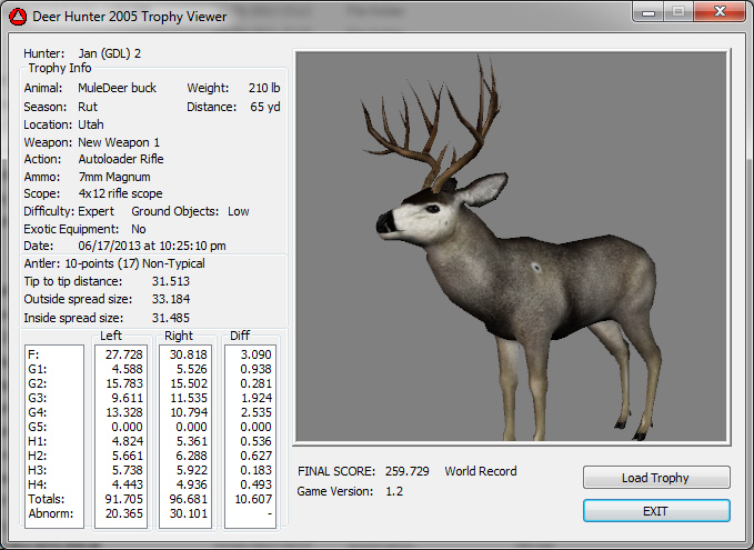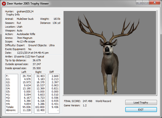 GAME SERVERS IP ADDRESS Granddad(GDL)82.36.51.239 Open 24/7 Please use ENGLISH when talking on server thank u. HI IF ANY ONE INCLUDING NON MEMBERS KILL A WR. EXPORT IT AND SEND IT IN AND WE WILL POST IT ON WEBSITE. SEND TO EITHER EMAILS ON FRONT WEBSITE. DH2005 GAME SERVER IP.. 82.36.51.239 IS OPEN TO ALL . SEE IF YOU CAN BEAT THE SCORE ON SCREEN AND GET YOUR KILL UP THERE FOR THE DAY. SCORE RESETS MIDNIGHT. Hi if your dh2005 v 1.2 does not play full screen replace aspen. dll and stags head in game folder, with aspen .dll and stags head in the patch found in downloads. HI WE HAVE SAT NIGHT HUNTS FROM 7PM UK TIME USING 5 STANDARD MAPS. IF YOU WANT TO JOIN IN PLEASE DO SO. WE ALSO HAVE WEEKLY COMPETITIONS FOR FUN, ANY IDEAS WELCOME. MEMBERSHIP AND DOWNLOADS ARE FREE. MEMBERSHIP IS JUST A FEW SIMPLE STEPS . THANK YOU FROM ALL AT (GDL). Hunter Skills by beardy The Game by beardy Hunting Tips by beardy WR/RB, Top Weight/Value Chart by beardy Rarity chart by beardy How To Export Trophies by granddad Golden Skins by beardy Trophies by beardy Rankings by beardy Hotspots by beardy How to install Teamspeak 3 by granddad DH 2005 Servers IP by granddad | Game sever ip 82.43.121.61 We are looking for members to keep the game running it's FREE just email grahammerrifield@gmail.com to say u would like to join.Our game server is open 24/7 to any 1. FEE to play on so come and see if you can get your name up in light's with best kill.Hope to see u soon. 82.43.121.61