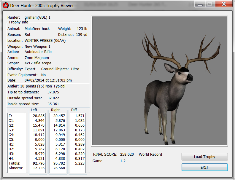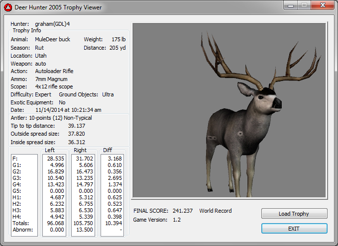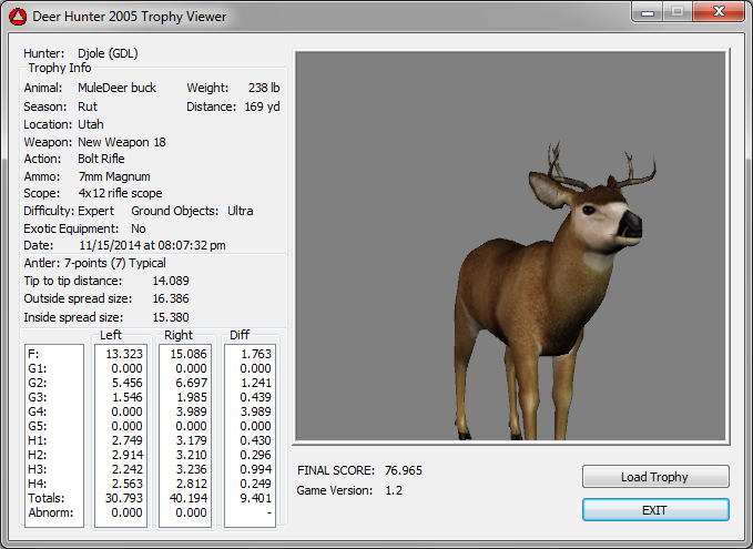 GAME SERVERS IP ADDRESS Granddad(GDL)82.36.51.239 Open 24/7 Please use ENGLISH when talking on server thank u. HI IF ANY ONE INCLUDING NON MEMBERS KILL A WR. EXPORT IT AND SEND IT IN AND WE WILL POST IT ON WEBSITE. SEND TO EITHER EMAILS ON FRONT WEBSITE. DH2005 GAME SERVER IP.. 82.36.51.239 IS OPEN TO ALL . SEE IF YOU CAN BEAT THE SCORE ON SCREEN AND GET YOUR KILL UP THERE FOR THE DAY. SCORE RESETS MIDNIGHT. Hi if your dh2005 v 1.2 does not play full screen replace aspen. dll and stags head in game folder, with aspen .dll and stags head in the patch found in downloads. HI WE HAVE SAT NIGHT HUNTS FROM 7PM UK TIME USING 5 STANDARD MAPS. IF YOU WANT TO JOIN IN PLEASE DO SO. WE ALSO HAVE WEEKLY COMPETITIONS FOR FUN, ANY IDEAS WELCOME. MEMBERSHIP AND DOWNLOADS ARE FREE. MEMBERSHIP IS JUST A FEW SIMPLE STEPS . THANK YOU FROM ALL AT (GDL). Hunter Skills by beardy The Game by beardy Hunting Tips by beardy WR/RB, Top Weight/Value Chart by beardy Rarity chart by beardy How To Export Trophies by granddad Golden Skins by beardy Trophies by beardy Rankings by beardy Hotspots by beardy How to install Teamspeak 3 by granddad DH 2005 Servers IP by granddad | Game sever ip 82.43.121.61 We are looking for members to keep the game running it's FREE just email grahammerrifield@gmail.com to say u would like to join.Our game server is open 24/7 to any 1. FEE to play on so come and see if you can get your name up in light's with best kill.Hope to see u soon. 82.43.121.61