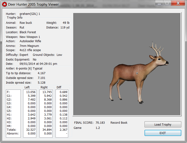 GAME SERVERS IP ADDRESS Granddad(GDL)82.36.51.239 Open 24/7 Please use ENGLISH when talking on server thank u. HI IF ANY ONE INCLUDING NON MEMBERS KILL A WR. EXPORT IT AND SEND IT IN AND WE WILL POST IT ON WEBSITE. SEND TO EITHER EMAILS ON FRONT WEBSITE. DH2005 GAME SERVER IP.. 82.36.51.239 IS OPEN TO ALL . SEE IF YOU CAN BEAT THE SCORE ON SCREEN AND GET YOUR KILL UP THERE FOR THE DAY. SCORE RESETS MIDNIGHT. Hi if your dh2005 v 1.2 does not play full screen replace aspen. dll and stags head in game folder, with aspen .dll and stags head in the patch found in downloads. HI WE HAVE SAT NIGHT HUNTS FROM 7PM UK TIME USING 5 STANDARD MAPS. IF YOU WANT TO JOIN IN PLEASE DO SO. WE ALSO HAVE WEEKLY COMPETITIONS FOR FUN, ANY IDEAS WELCOME. MEMBERSHIP AND DOWNLOADS ARE FREE. MEMBERSHIP IS JUST A FEW SIMPLE STEPS . THANK YOU FROM ALL AT (GDL). Hunter Skills by beardy The Game by beardy Hunting Tips by beardy WR/RB, Top Weight/Value Chart by beardy Rarity chart by beardy How To Export Trophies by granddad Golden Skins by beardy Trophies by beardy Rankings by beardy Hotspots by beardy How to install Teamspeak 3 by granddad DH 2005 Servers IP by granddad | Game sever ip 82.43.121.61 We are looking for members to keep the game running it's FREE just email grahammerrifield@gmail.com to say u would like to join.Our game server is open 24/7 to any 1. FEE to play on so come and see if you can get your name up in light's with best kill.Hope to see u soon. 82.43.121.61