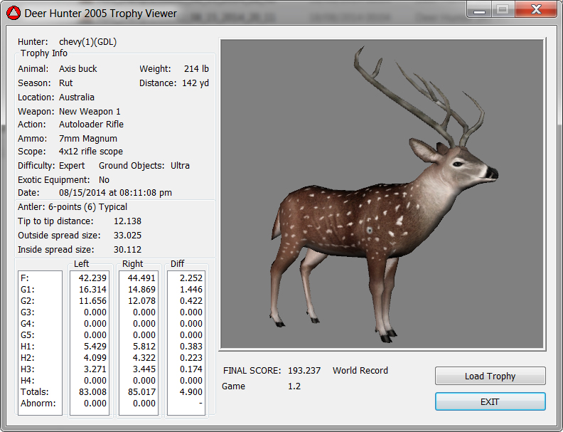 GAME SERVERS IP ADDRESS Granddad(GDL)82.36.51.239 Open 24/7 Please use ENGLISH when talking on server thank u. HI IF ANY ONE INCLUDING NON MEMBERS KILL A WR. EXPORT IT AND SEND IT IN AND WE WILL POST IT ON WEBSITE. SEND TO EITHER EMAILS ON FRONT WEBSITE. DH2005 GAME SERVER IP.. 82.36.51.239 IS OPEN TO ALL . SEE IF YOU CAN BEAT THE SCORE ON SCREEN AND GET YOUR KILL UP THERE FOR THE DAY. SCORE RESETS MIDNIGHT. Hi if your dh2005 v 1.2 does not play full screen replace aspen. dll and stags head in game folder, with aspen .dll and stags head in the patch found in downloads. HI WE HAVE SAT NIGHT HUNTS FROM 7PM UK TIME USING 5 STANDARD MAPS. IF YOU WANT TO JOIN IN PLEASE DO SO. WE ALSO HAVE WEEKLY COMPETITIONS FOR FUN, ANY IDEAS WELCOME. MEMBERSHIP AND DOWNLOADS ARE FREE. MEMBERSHIP IS JUST A FEW SIMPLE STEPS . THANK YOU FROM ALL AT (GDL). Hunter Skills by beardy The Game by beardy Hunting Tips by beardy WR/RB, Top Weight/Value Chart by beardy Rarity chart by beardy How To Export Trophies by granddad Golden Skins by beardy Trophies by beardy Rankings by beardy Hotspots by beardy How to install Teamspeak 3 by granddad DH 2005 Servers IP by granddad | Game sever ip 82.43.121.61 We are looking for members to keep the game running it's FREE just email grahammerrifield@gmail.com to say u would like to join.Our game server is open 24/7 to any 1. FEE to play on so come and see if you can get your name up in light's with best kill.Hope to see u soon. 82.43.121.61