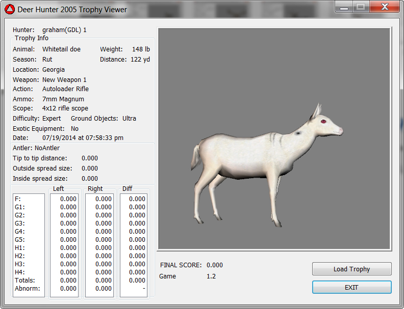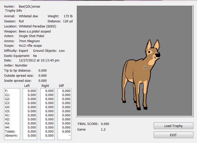 GAME SERVERS IP ADDRESS Granddad(GDL)82.36.51.239 Open 24/7 Please use ENGLISH when talking on server thank u. HI IF ANY ONE INCLUDING NON MEMBERS KILL A WR. EXPORT IT AND SEND IT IN AND WE WILL POST IT ON WEBSITE. SEND TO EITHER EMAILS ON FRONT WEBSITE. DH2005 GAME SERVER IP.. 82.36.51.239 IS OPEN TO ALL . SEE IF YOU CAN BEAT THE SCORE ON SCREEN AND GET YOUR KILL UP THERE FOR THE DAY. SCORE RESETS MIDNIGHT. Hi if your dh2005 v 1.2 does not play full screen replace aspen. dll and stags head in game folder, with aspen .dll and stags head in the patch found in downloads. HI WE HAVE SAT NIGHT HUNTS FROM 7PM UK TIME USING 5 STANDARD MAPS. IF YOU WANT TO JOIN IN PLEASE DO SO. WE ALSO HAVE WEEKLY COMPETITIONS FOR FUN, ANY IDEAS WELCOME. MEMBERSHIP AND DOWNLOADS ARE FREE. MEMBERSHIP IS JUST A FEW SIMPLE STEPS . THANK YOU FROM ALL AT (GDL). Hunter Skills by beardy The Game by beardy Hunting Tips by beardy WR/RB, Top Weight/Value Chart by beardy Rarity chart by beardy How To Export Trophies by granddad Golden Skins by beardy Trophies by beardy Rankings by beardy Hotspots by beardy How to install Teamspeak 3 by granddad DH 2005 Servers IP by granddad | Game sever ip 82.43.121.61 We are looking for members to keep the game running it's FREE just email grahammerrifield@gmail.com to say u would like to join.Our game server is open 24/7 to any 1. FEE to play on so come and see if you can get your name up in light's with best kill.Hope to see u soon. 82.43.121.61