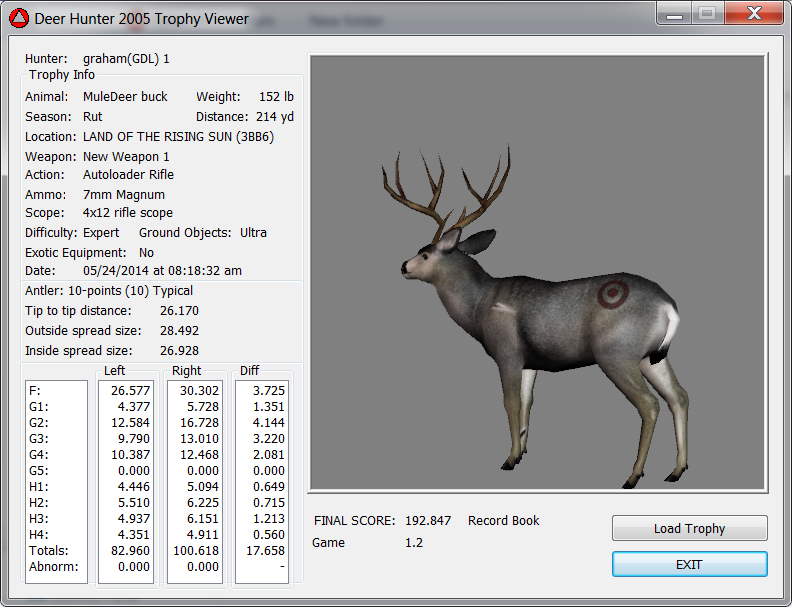 GAME SERVERS IP ADDRESS Granddad(GDL)82.36.51.239 Open 24/7 Please use ENGLISH when talking on server thank u. HI IF ANY ONE INCLUDING NON MEMBERS KILL A WR. EXPORT IT AND SEND IT IN AND WE WILL POST IT ON WEBSITE. SEND TO EITHER EMAILS ON FRONT WEBSITE. DH2005 GAME SERVER IP.. 82.36.51.239 IS OPEN TO ALL . SEE IF YOU CAN BEAT THE SCORE ON SCREEN AND GET YOUR KILL UP THERE FOR THE DAY. SCORE RESETS MIDNIGHT. Hi if your dh2005 v 1.2 does not play full screen replace aspen. dll and stags head in game folder, with aspen .dll and stags head in the patch found in downloads. HI WE HAVE SAT NIGHT HUNTS FROM 7PM UK TIME USING 5 STANDARD MAPS. IF YOU WANT TO JOIN IN PLEASE DO SO. WE ALSO HAVE WEEKLY COMPETITIONS FOR FUN, ANY IDEAS WELCOME. MEMBERSHIP AND DOWNLOADS ARE FREE. MEMBERSHIP IS JUST A FEW SIMPLE STEPS . THANK YOU FROM ALL AT (GDL). Hunter Skills by beardy The Game by beardy Hunting Tips by beardy WR/RB, Top Weight/Value Chart by beardy Rarity chart by beardy How To Export Trophies by granddad Golden Skins by beardy Trophies by beardy Rankings by beardy Hotspots by beardy How to install Teamspeak 3 by granddad DH 2005 Servers IP by granddad | Game sever ip 82.43.121.61 We are looking for members to keep the game running it's FREE just email grahammerrifield@gmail.com to say u would like to join.Our game server is open 24/7 to any 1. FEE to play on so come and see if you can get your name up in light's with best kill.Hope to see u soon. 82.43.121.61