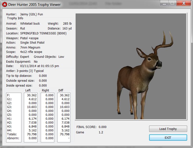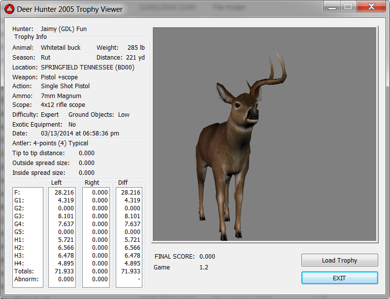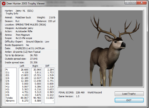GAME SERVERS IP ADDRESS Granddad(GDL)82.36.51.239 Open 24/7 Please use ENGLISH when talking on server thank u. HI IF ANY ONE INCLUDING NON MEMBERS KILL A WR. EXPORT IT AND SEND IT IN AND WE WILL POST IT ON WEBSITE. SEND TO EITHER EMAILS ON FRONT WEBSITE. DH2005 GAME SERVER IP.. 82.36.51.239 IS OPEN TO ALL . SEE IF YOU CAN BEAT THE SCORE ON SCREEN AND GET YOUR KILL UP THERE FOR THE DAY. SCORE RESETS MIDNIGHT. Hi if your dh2005 v 1.2 does not play full screen replace aspen. dll and stags head in game folder, with aspen .dll and stags head in the patch found in downloads. HI WE HAVE SAT NIGHT HUNTS FROM 7PM UK TIME USING 5 STANDARD MAPS. IF YOU WANT TO JOIN IN PLEASE DO SO. WE ALSO HAVE WEEKLY COMPETITIONS FOR FUN, ANY IDEAS WELCOME. MEMBERSHIP AND DOWNLOADS ARE FREE. MEMBERSHIP IS JUST A FEW SIMPLE STEPS . THANK YOU FROM ALL AT (GDL). Hunter Skills by beardy The Game by beardy Hunting Tips by beardy WR/RB, Top Weight/Value Chart by beardy Rarity chart by beardy How To Export Trophies by granddad Golden Skins by beardy Trophies by beardy Rankings by beardy Hotspots by beardy How to install Teamspeak 3 by granddad DH 2005 Servers IP by granddad | Game sever ip 82.43.121.61 We are looking for members to keep the game running it's FREE just email grahammerrifield@gmail.com to say u would like to join.Our game server is open 24/7 to any 1. FEE to play on so come and see if you can get your name up in light's with best kill.Hope to see u soon. 82.43.121.61