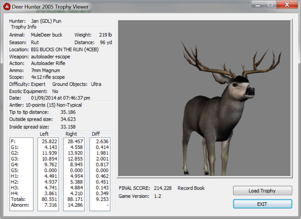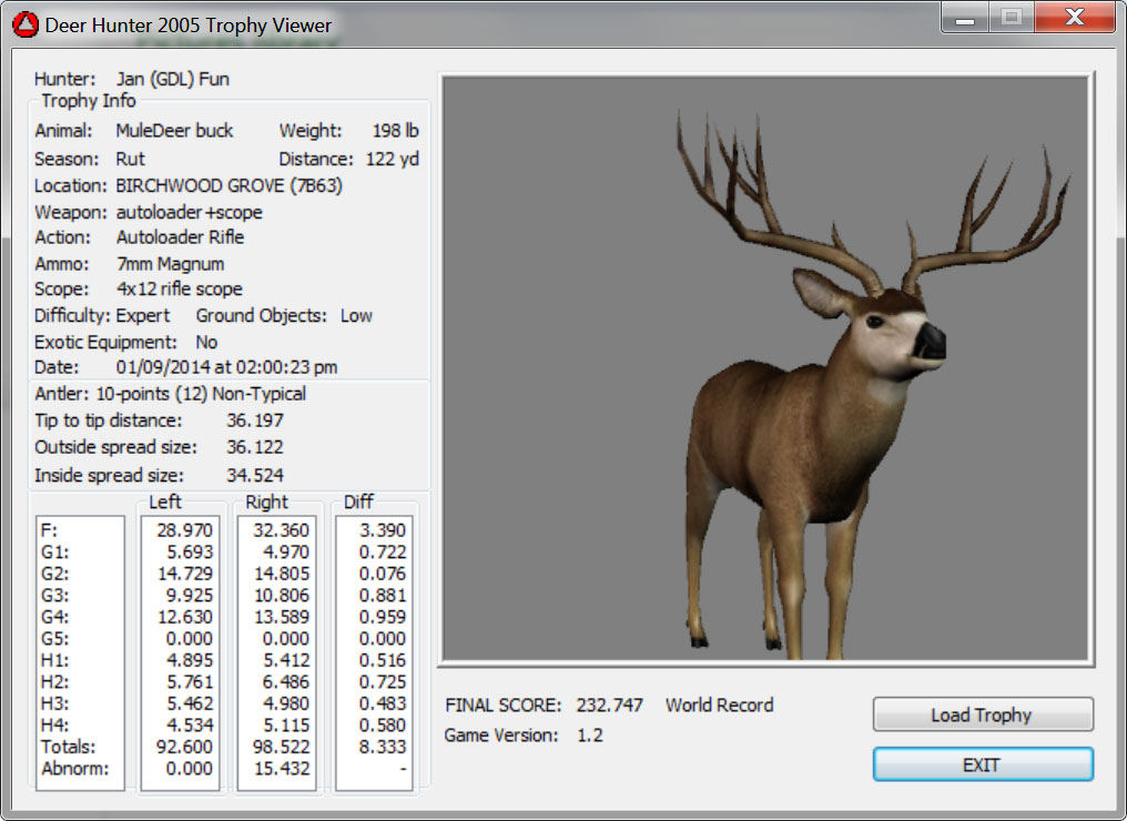 GAME SERVERS IP ADDRESS Granddad(GDL)82.36.51.239 Open 24/7 Please use ENGLISH when talking on server thank u. HI IF ANY ONE INCLUDING NON MEMBERS KILL A WR. EXPORT IT AND SEND IT IN AND WE WILL POST IT ON WEBSITE. SEND TO EITHER EMAILS ON FRONT WEBSITE. DH2005 GAME SERVER IP.. 82.36.51.239 IS OPEN TO ALL . SEE IF YOU CAN BEAT THE SCORE ON SCREEN AND GET YOUR KILL UP THERE FOR THE DAY. SCORE RESETS MIDNIGHT. Hi if your dh2005 v 1.2 does not play full screen replace aspen. dll and stags head in game folder, with aspen .dll and stags head in the patch found in downloads. HI WE HAVE SAT NIGHT HUNTS FROM 7PM UK TIME USING 5 STANDARD MAPS. IF YOU WANT TO JOIN IN PLEASE DO SO. WE ALSO HAVE WEEKLY COMPETITIONS FOR FUN, ANY IDEAS WELCOME. MEMBERSHIP AND DOWNLOADS ARE FREE. MEMBERSHIP IS JUST A FEW SIMPLE STEPS . THANK YOU FROM ALL AT (GDL). Hunter Skills by beardy The Game by beardy Hunting Tips by beardy WR/RB, Top Weight/Value Chart by beardy Rarity chart by beardy How To Export Trophies by granddad Golden Skins by beardy Trophies by beardy Rankings by beardy Hotspots by beardy How to install Teamspeak 3 by granddad DH 2005 Servers IP by granddad | Game sever ip 82.43.121.61 We are looking for members to keep the game running it's FREE just email grahammerrifield@gmail.com to say u would like to join.Our game server is open 24/7 to any 1. FEE to play on so come and see if you can get your name up in light's with best kill.Hope to see u soon. 82.43.121.61