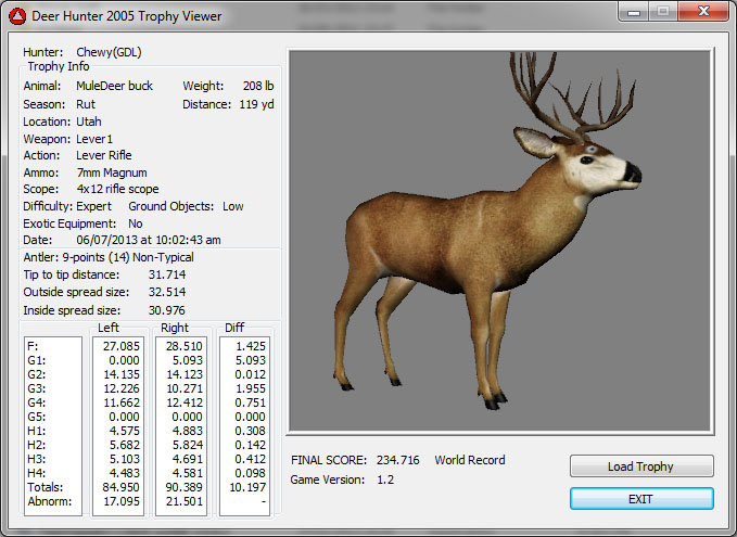 GAME SERVERS IP ADDRESS Granddad(GDL)82.36.51.239 Open 24/7 Please use ENGLISH when talking on server thank u. HI IF ANY ONE INCLUDING NON MEMBERS KILL A WR. EXPORT IT AND SEND IT IN AND WE WILL POST IT ON WEBSITE. SEND TO EITHER EMAILS ON FRONT WEBSITE. DH2005 GAME SERVER IP.. 82.36.51.239 IS OPEN TO ALL . SEE IF YOU CAN BEAT THE SCORE ON SCREEN AND GET YOUR KILL UP THERE FOR THE DAY. SCORE RESETS MIDNIGHT. Hi if your dh2005 v 1.2 does not play full screen replace aspen. dll and stags head in game folder, with aspen .dll and stags head in the patch found in downloads. HI WE HAVE SAT NIGHT HUNTS FROM 7PM UK TIME USING 5 STANDARD MAPS. IF YOU WANT TO JOIN IN PLEASE DO SO. WE ALSO HAVE WEEKLY COMPETITIONS FOR FUN, ANY IDEAS WELCOME. MEMBERSHIP AND DOWNLOADS ARE FREE. MEMBERSHIP IS JUST A FEW SIMPLE STEPS . THANK YOU FROM ALL AT (GDL). Hunter Skills by beardy The Game by beardy Hunting Tips by beardy WR/RB, Top Weight/Value Chart by beardy Rarity chart by beardy How To Export Trophies by granddad Golden Skins by beardy Trophies by beardy Rankings by beardy Hotspots by beardy How to install Teamspeak 3 by granddad DH 2005 Servers IP by granddad | Game sever ip 82.43.121.61 We are looking for members to keep the game running it's FREE just email grahammerrifield@gmail.com to say u would like to join.Our game server is open 24/7 to any 1. FEE to play on so come and see if you can get your name up in light's with best kill.Hope to see u soon. 82.43.121.61