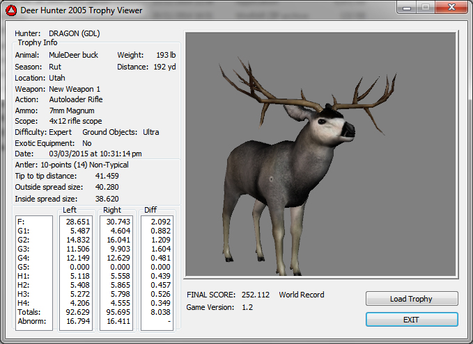 GAME SERVERS IP ADDRESS Granddad(GDL)82.36.51.239 Open 24/7 Please use ENGLISH when talking on server thank u. HI IF ANY ONE INCLUDING NON MEMBERS KILL A WR. EXPORT IT AND SEND IT IN AND WE WILL POST IT ON WEBSITE. SEND TO EITHER EMAILS ON FRONT WEBSITE. DH2005 GAME SERVER IP.. 82.36.51.239 IS OPEN TO ALL . SEE IF YOU CAN BEAT THE SCORE ON SCREEN AND GET YOUR KILL UP THERE FOR THE DAY. SCORE RESETS MIDNIGHT. Hi if your dh2005 v 1.2 does not play full screen replace aspen. dll and stags head in game folder, with aspen .dll and stags head in the patch found in downloads. HI WE HAVE SAT NIGHT HUNTS FROM 7PM UK TIME USING 5 STANDARD MAPS. IF YOU WANT TO JOIN IN PLEASE DO SO. WE ALSO HAVE WEEKLY COMPETITIONS FOR FUN, ANY IDEAS WELCOME. MEMBERSHIP AND DOWNLOADS ARE FREE. MEMBERSHIP IS JUST A FEW SIMPLE STEPS . THANK YOU FROM ALL AT (GDL). Hunter Skills by beardy The Game by beardy Hunting Tips by beardy WR/RB, Top Weight/Value Chart by beardy Rarity chart by beardy How To Export Trophies by granddad Golden Skins by beardy Trophies by beardy Rankings by beardy Hotspots by beardy How to install Teamspeak 3 by granddad DH 2005 Servers IP by granddad | Game sever ip 82.43.121.61 We are looking for members to keep the game running it's FREE just email grahammerrifield@gmail.com to say u would like to join.Our game server is open 24/7 to any 1. FEE to play on so come and see if you can get your name up in light's with best kill.Hope to see u soon. 82.43.121.61