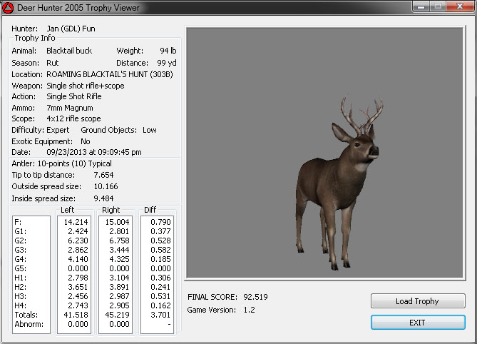 GAME SERVERS IP ADDRESS Granddad(GDL)82.36.51.239 Open 24/7 Please use ENGLISH when talking on server thank u. HI IF ANY ONE INCLUDING NON MEMBERS KILL A WR. EXPORT IT AND SEND IT IN AND WE WILL POST IT ON WEBSITE. SEND TO EITHER EMAILS ON FRONT WEBSITE. DH2005 GAME SERVER IP.. 82.36.51.239 IS OPEN TO ALL . SEE IF YOU CAN BEAT THE SCORE ON SCREEN AND GET YOUR KILL UP THERE FOR THE DAY. SCORE RESETS MIDNIGHT. Hi if your dh2005 v 1.2 does not play full screen replace aspen. dll and stags head in game folder, with aspen .dll and stags head in the patch found in downloads. HI WE HAVE SAT NIGHT HUNTS FROM 7PM UK TIME USING 5 STANDARD MAPS. IF YOU WANT TO JOIN IN PLEASE DO SO. WE ALSO HAVE WEEKLY COMPETITIONS FOR FUN, ANY IDEAS WELCOME. MEMBERSHIP AND DOWNLOADS ARE FREE. MEMBERSHIP IS JUST A FEW SIMPLE STEPS . THANK YOU FROM ALL AT (GDL). Hunter Skills by beardy The Game by beardy Hunting Tips by beardy WR/RB, Top Weight/Value Chart by beardy Rarity chart by beardy How To Export Trophies by granddad Golden Skins by beardy Trophies by beardy Rankings by beardy Hotspots by beardy How to install Teamspeak 3 by granddad DH 2005 Servers IP by granddad | Game sever ip 82.43.121.61 We are looking for members to keep the game running it's FREE just email grahammerrifield@gmail.com to say u would like to join.Our game server is open 24/7 to any 1. FEE to play on so come and see if you can get your name up in light's with best kill.Hope to see u soon. 82.43.121.61