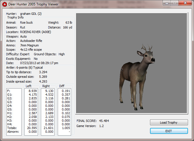 GAME SERVERS IP ADDRESS Granddad(GDL)82.36.51.239 Open 24/7 Please use ENGLISH when talking on server thank u. HI IF ANY ONE INCLUDING NON MEMBERS KILL A WR. EXPORT IT AND SEND IT IN AND WE WILL POST IT ON WEBSITE. SEND TO EITHER EMAILS ON FRONT WEBSITE. DH2005 GAME SERVER IP.. 82.36.51.239 IS OPEN TO ALL . SEE IF YOU CAN BEAT THE SCORE ON SCREEN AND GET YOUR KILL UP THERE FOR THE DAY. SCORE RESETS MIDNIGHT. Hi if your dh2005 v 1.2 does not play full screen replace aspen. dll and stags head in game folder, with aspen .dll and stags head in the patch found in downloads. HI WE HAVE SAT NIGHT HUNTS FROM 7PM UK TIME USING 5 STANDARD MAPS. IF YOU WANT TO JOIN IN PLEASE DO SO. WE ALSO HAVE WEEKLY COMPETITIONS FOR FUN, ANY IDEAS WELCOME. MEMBERSHIP AND DOWNLOADS ARE FREE. MEMBERSHIP IS JUST A FEW SIMPLE STEPS . THANK YOU FROM ALL AT (GDL). Hunter Skills by beardy The Game by beardy Hunting Tips by beardy WR/RB, Top Weight/Value Chart by beardy Rarity chart by beardy How To Export Trophies by granddad Golden Skins by beardy Trophies by beardy Rankings by beardy Hotspots by beardy How to install Teamspeak 3 by granddad DH 2005 Servers IP by granddad | Game sever ip 82.43.121.61 We are looking for members to keep the game running it's FREE just email grahammerrifield@gmail.com to say u would like to join.Our game server is open 24/7 to any 1. FEE to play on so come and see if you can get your name up in light's with best kill.Hope to see u soon. 82.43.121.61