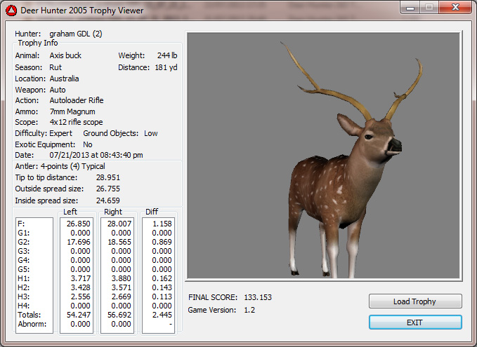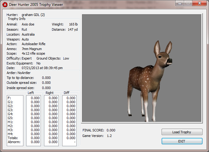 GAME SERVERS IP ADDRESS Granddad(GDL)82.36.51.239 Open 24/7 Please use ENGLISH when talking on server thank u. HI IF ANY ONE INCLUDING NON MEMBERS KILL A WR. EXPORT IT AND SEND IT IN AND WE WILL POST IT ON WEBSITE. SEND TO EITHER EMAILS ON FRONT WEBSITE. DH2005 GAME SERVER IP.. 82.36.51.239 IS OPEN TO ALL . SEE IF YOU CAN BEAT THE SCORE ON SCREEN AND GET YOUR KILL UP THERE FOR THE DAY. SCORE RESETS MIDNIGHT. Hi if your dh2005 v 1.2 does not play full screen replace aspen. dll and stags head in game folder, with aspen .dll and stags head in the patch found in downloads. HI WE HAVE SAT NIGHT HUNTS FROM 7PM UK TIME USING 5 STANDARD MAPS. IF YOU WANT TO JOIN IN PLEASE DO SO. WE ALSO HAVE WEEKLY COMPETITIONS FOR FUN, ANY IDEAS WELCOME. MEMBERSHIP AND DOWNLOADS ARE FREE. MEMBERSHIP IS JUST A FEW SIMPLE STEPS . THANK YOU FROM ALL AT (GDL). Hunter Skills by beardy The Game by beardy Hunting Tips by beardy WR/RB, Top Weight/Value Chart by beardy Rarity chart by beardy How To Export Trophies by granddad Golden Skins by beardy Trophies by beardy Rankings by beardy Hotspots by beardy How to install Teamspeak 3 by granddad DH 2005 Servers IP by granddad | Game sever ip 82.43.121.61 We are looking for members to keep the game running it's FREE just email grahammerrifield@gmail.com to say u would like to join.Our game server is open 24/7 to any 1. FEE to play on so come and see if you can get your name up in light's with best kill.Hope to see u soon. 82.43.121.61