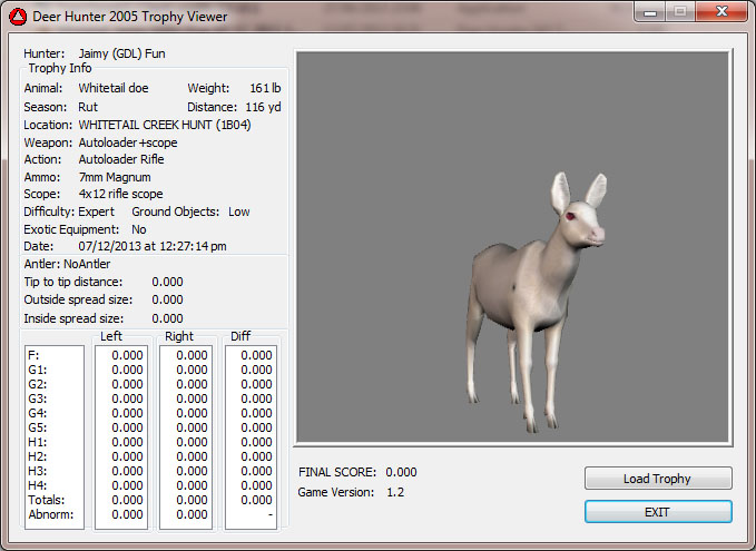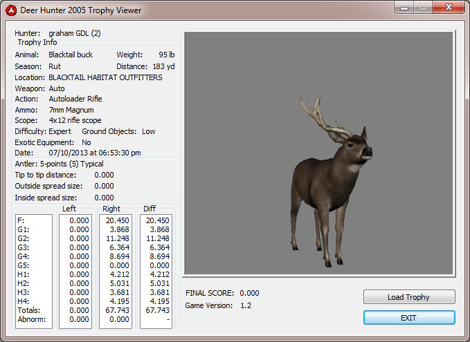 GAME SERVERS IP ADDRESS Granddad(GDL)82.36.51.239 Open 24/7 Please use ENGLISH when talking on server thank u. HI IF ANY ONE INCLUDING NON MEMBERS KILL A WR. EXPORT IT AND SEND IT IN AND WE WILL POST IT ON WEBSITE. SEND TO EITHER EMAILS ON FRONT WEBSITE. DH2005 GAME SERVER IP.. 82.36.51.239 IS OPEN TO ALL . SEE IF YOU CAN BEAT THE SCORE ON SCREEN AND GET YOUR KILL UP THERE FOR THE DAY. SCORE RESETS MIDNIGHT. Hi if your dh2005 v 1.2 does not play full screen replace aspen. dll and stags head in game folder, with aspen .dll and stags head in the patch found in downloads. HI WE HAVE SAT NIGHT HUNTS FROM 7PM UK TIME USING 5 STANDARD MAPS. IF YOU WANT TO JOIN IN PLEASE DO SO. WE ALSO HAVE WEEKLY COMPETITIONS FOR FUN, ANY IDEAS WELCOME. MEMBERSHIP AND DOWNLOADS ARE FREE. MEMBERSHIP IS JUST A FEW SIMPLE STEPS . THANK YOU FROM ALL AT (GDL). Hunter Skills by beardy The Game by beardy Hunting Tips by beardy WR/RB, Top Weight/Value Chart by beardy Rarity chart by beardy How To Export Trophies by granddad Golden Skins by beardy Trophies by beardy Rankings by beardy Hotspots by beardy How to install Teamspeak 3 by granddad DH 2005 Servers IP by granddad | Game sever ip 82.43.121.61 We are looking for members to keep the game running it's FREE just email grahammerrifield@gmail.com to say u would like to join.Our game server is open 24/7 to any 1. FEE to play on so come and see if you can get your name up in light's with best kill.Hope to see u soon. 82.43.121.61