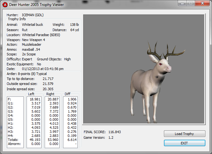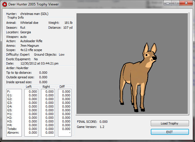 GAME SERVERS IP ADDRESS Granddad(GDL)82.36.51.239 Open 24/7 Please use ENGLISH when talking on server thank u. HI IF ANY ONE INCLUDING NON MEMBERS KILL A WR. EXPORT IT AND SEND IT IN AND WE WILL POST IT ON WEBSITE. SEND TO EITHER EMAILS ON FRONT WEBSITE. DH2005 GAME SERVER IP.. 82.36.51.239 IS OPEN TO ALL . SEE IF YOU CAN BEAT THE SCORE ON SCREEN AND GET YOUR KILL UP THERE FOR THE DAY. SCORE RESETS MIDNIGHT. Hi if your dh2005 v 1.2 does not play full screen replace aspen. dll and stags head in game folder, with aspen .dll and stags head in the patch found in downloads. HI WE HAVE SAT NIGHT HUNTS FROM 7PM UK TIME USING 5 STANDARD MAPS. IF YOU WANT TO JOIN IN PLEASE DO SO. WE ALSO HAVE WEEKLY COMPETITIONS FOR FUN, ANY IDEAS WELCOME. MEMBERSHIP AND DOWNLOADS ARE FREE. MEMBERSHIP IS JUST A FEW SIMPLE STEPS . THANK YOU FROM ALL AT (GDL). Hunter Skills by beardy The Game by beardy Hunting Tips by beardy WR/RB, Top Weight/Value Chart by beardy Rarity chart by beardy How To Export Trophies by granddad Golden Skins by beardy Trophies by beardy Rankings by beardy Hotspots by beardy How to install Teamspeak 3 by granddad DH 2005 Servers IP by granddad | Game sever ip 82.43.121.61 We are looking for members to keep the game running it's FREE just email grahammerrifield@gmail.com to say u would like to join.Our game server is open 24/7 to any 1. FEE to play on so come and see if you can get your name up in light's with best kill.Hope to see u soon. 82.43.121.61