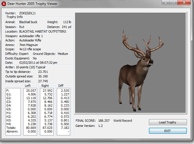 GAME SERVERS IP ADDRESS Granddad(GDL)82.36.51.239 Open 24/7 Please use ENGLISH when talking on server thank u. HI IF ANY ONE INCLUDING NON MEMBERS KILL A WR. EXPORT IT AND SEND IT IN AND WE WILL POST IT ON WEBSITE. SEND TO EITHER EMAILS ON FRONT WEBSITE. DH2005 GAME SERVER IP.. 82.36.51.239 IS OPEN TO ALL . SEE IF YOU CAN BEAT THE SCORE ON SCREEN AND GET YOUR KILL UP THERE FOR THE DAY. SCORE RESETS MIDNIGHT. Hi if your dh2005 v 1.2 does not play full screen replace aspen. dll and stags head in game folder, with aspen .dll and stags head in the patch found in downloads. HI WE HAVE SAT NIGHT HUNTS FROM 7PM UK TIME USING 5 STANDARD MAPS. IF YOU WANT TO JOIN IN PLEASE DO SO. WE ALSO HAVE WEEKLY COMPETITIONS FOR FUN, ANY IDEAS WELCOME. MEMBERSHIP AND DOWNLOADS ARE FREE. MEMBERSHIP IS JUST A FEW SIMPLE STEPS . THANK YOU FROM ALL AT (GDL). Hunter Skills by beardy The Game by beardy Hunting Tips by beardy WR/RB, Top Weight/Value Chart by beardy Rarity chart by beardy How To Export Trophies by granddad Golden Skins by beardy Trophies by beardy Rankings by beardy Hotspots by beardy How to install Teamspeak 3 by granddad DH 2005 Servers IP by granddad | Game sever ip 82.43.121.61 We are looking for members to keep the game running it's FREE just email grahammerrifield@gmail.com to say u would like to join.Our game server is open 24/7 to any 1. FEE to play on so come and see if you can get your name up in light's with best kill.Hope to see u soon. 82.43.121.61