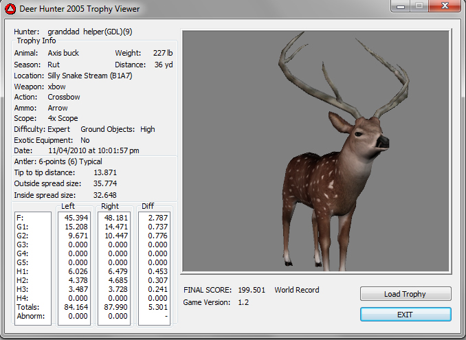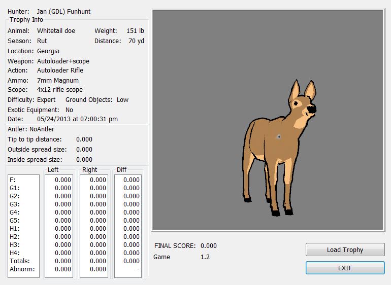 GAME SERVERS IP ADDRESS Granddad(GDL)82.36.51.239 Open 24/7 Please use ENGLISH when talking on server thank u. HI IF ANY ONE INCLUDING NON MEMBERS KILL A WR. EXPORT IT AND SEND IT IN AND WE WILL POST IT ON WEBSITE. SEND TO EITHER EMAILS ON FRONT WEBSITE. DH2005 GAME SERVER IP.. 82.36.51.239 IS OPEN TO ALL . SEE IF YOU CAN BEAT THE SCORE ON SCREEN AND GET YOUR KILL UP THERE FOR THE DAY. SCORE RESETS MIDNIGHT. Hi if your dh2005 v 1.2 does not play full screen replace aspen. dll and stags head in game folder, with aspen .dll and stags head in the patch found in downloads. HI WE HAVE SAT NIGHT HUNTS FROM 7PM UK TIME USING 5 STANDARD MAPS. IF YOU WANT TO JOIN IN PLEASE DO SO. WE ALSO HAVE WEEKLY COMPETITIONS FOR FUN, ANY IDEAS WELCOME. MEMBERSHIP AND DOWNLOADS ARE FREE. MEMBERSHIP IS JUST A FEW SIMPLE STEPS . THANK YOU FROM ALL AT (GDL). Hunter Skills by beardy The Game by beardy Hunting Tips by beardy WR/RB, Top Weight/Value Chart by beardy Rarity chart by beardy How To Export Trophies by granddad Golden Skins by beardy Trophies by beardy Rankings by beardy Hotspots by beardy How to install Teamspeak 3 by granddad DH 2005 Servers IP by granddad | Game sever ip 82.43.121.61 We are looking for members to keep the game running it's FREE just email grahammerrifield@gmail.com to say u would like to join.Our game server is open 24/7 to any 1. FEE to play on so come and see if you can get your name up in light's with best kill.Hope to see u soon. 82.43.121.61